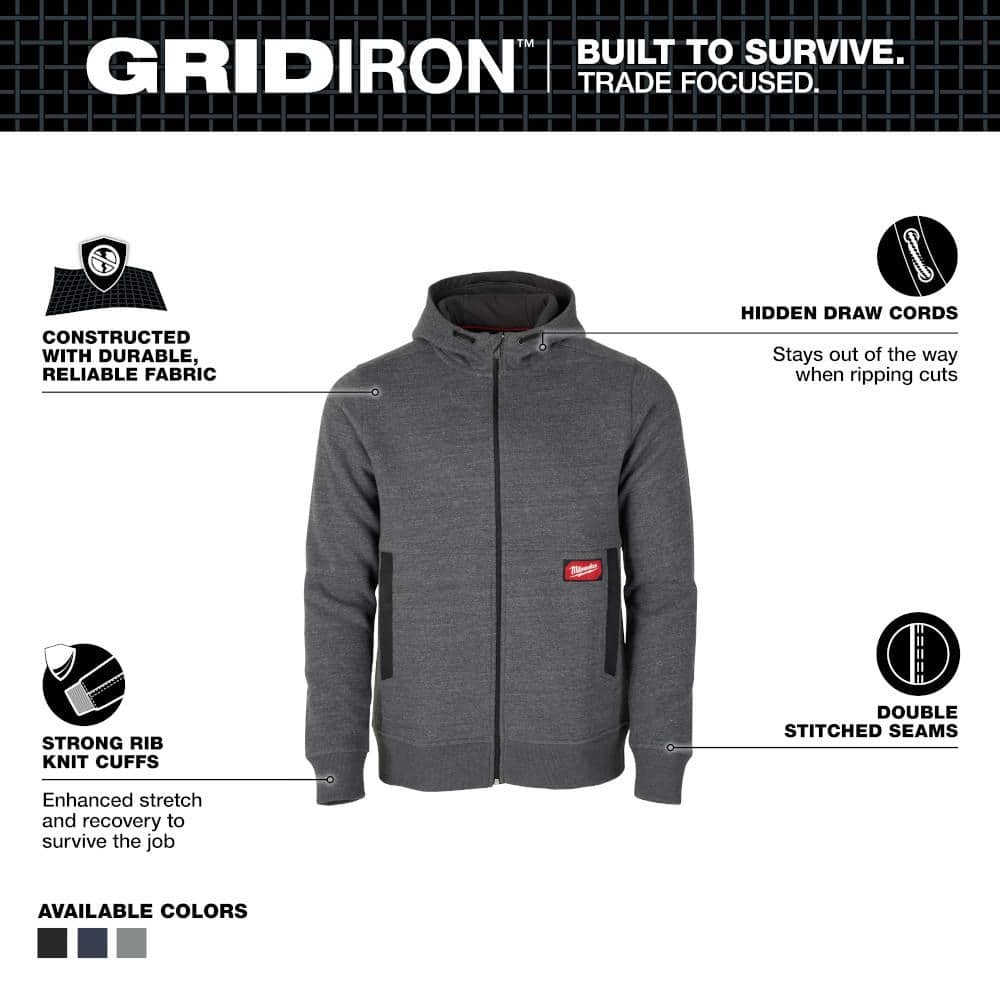 Milwaukee Men's 2X-Large Gray GRIDIRON Full-Zip Hoodie