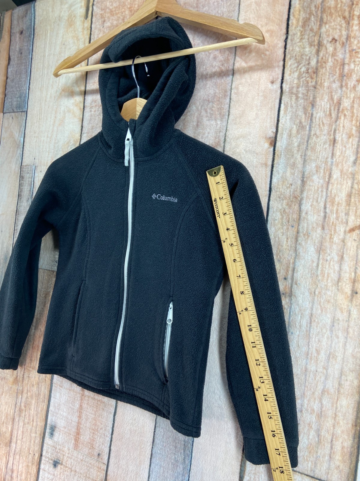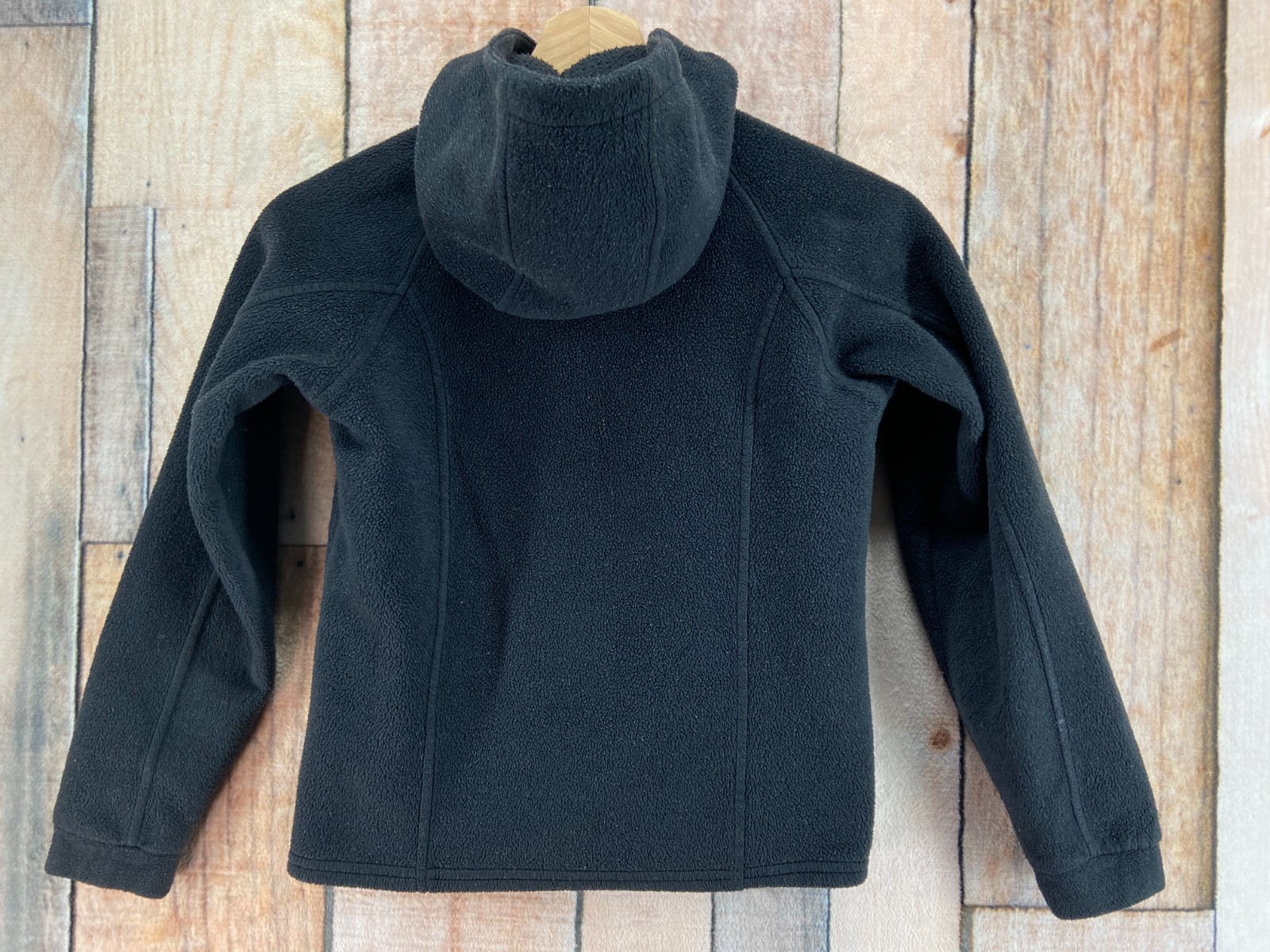 как выглядит Columbia Sportswear Youth Hooded Fleece Jacket Black Full Zip Softshell Kids 7/8 фото