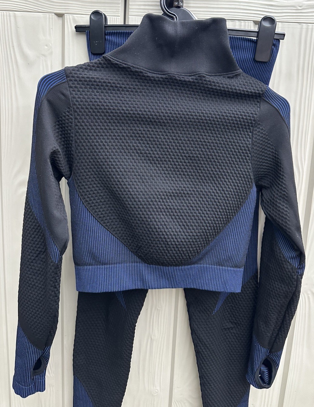 как выглядит Navy Blue 2 Piece Gym Set Long Sleeve Cropped Top Leggings UK Size Small фото