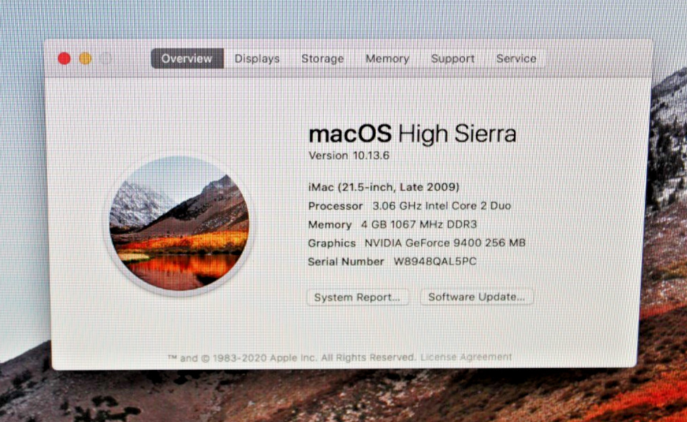 Apple iMac, 21.5 A1311 Late 2009 , Intel Core 2 Duo 3.06GHz, 4GB RAM, 500GB HD
