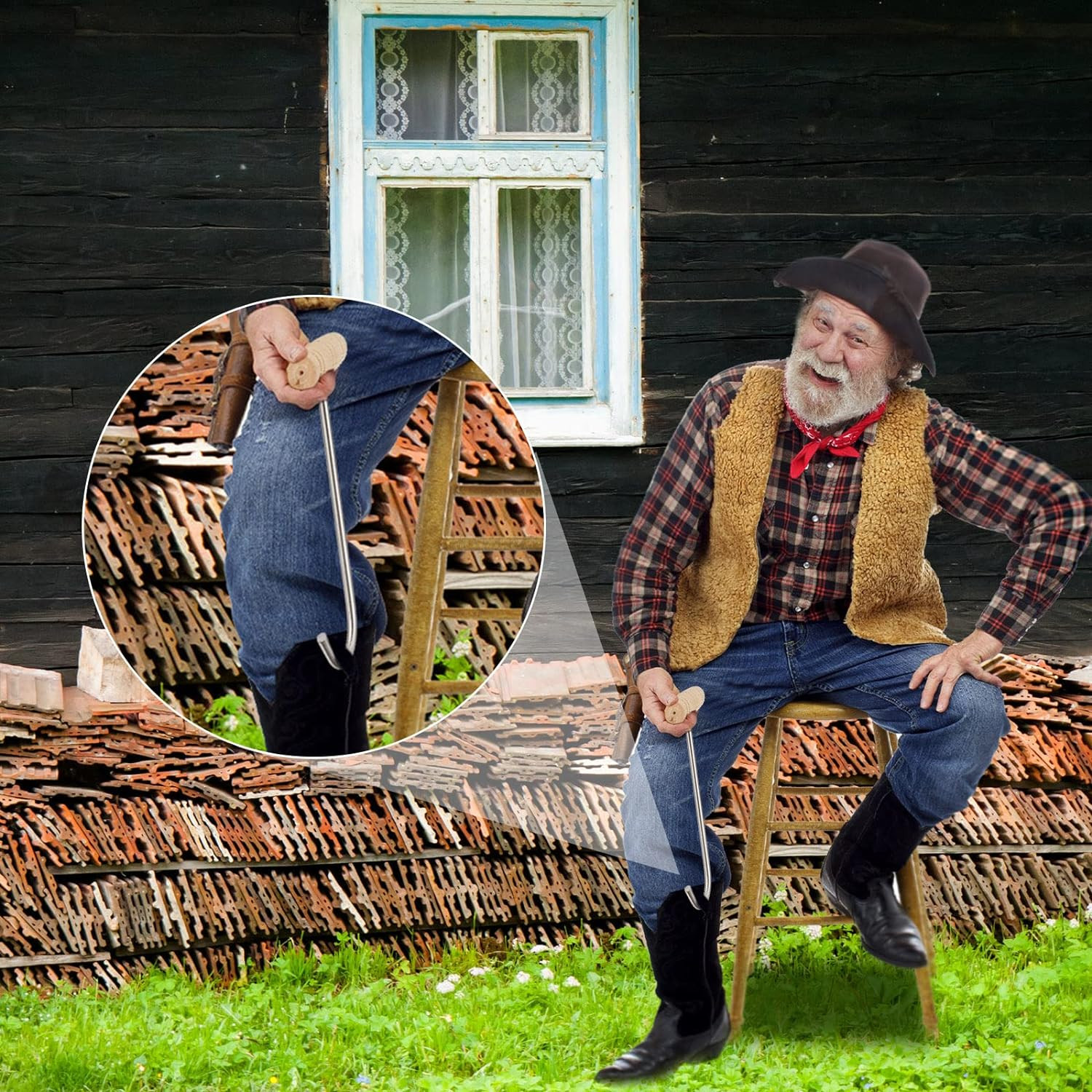 как выглядит 2 Pcs Boot Pulls with Handle Boot Hooks Long Shoes Pull Stainless Wooden Cowboy фото