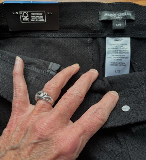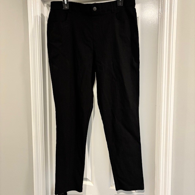 как выглядит Mario Serrani Italy Black Pull On Pant L Textured Stretch Career Casual Minimal фото