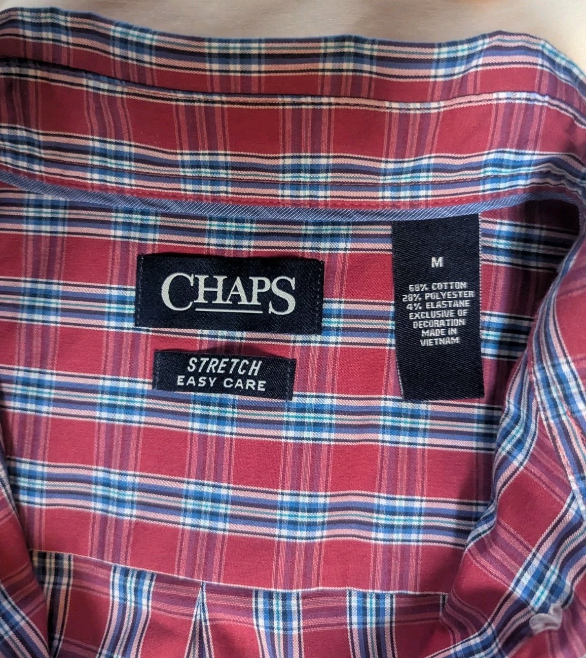 Chaps Mens - Stretch, Easy Care, Red/Blue Plaid, Long Sleeve, Button Up Med New