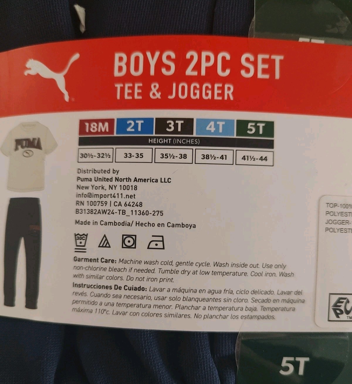 NEW Puma Boys 2 Piece 5T Set Varsity