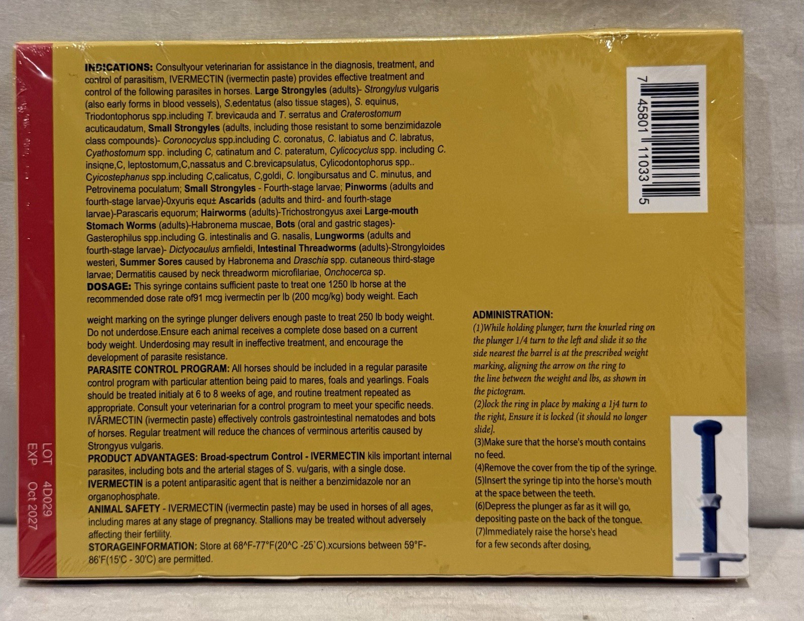 3 pack New In Box Paste Horse Dewormer Apple Flavor Exp 10/2027 wormer