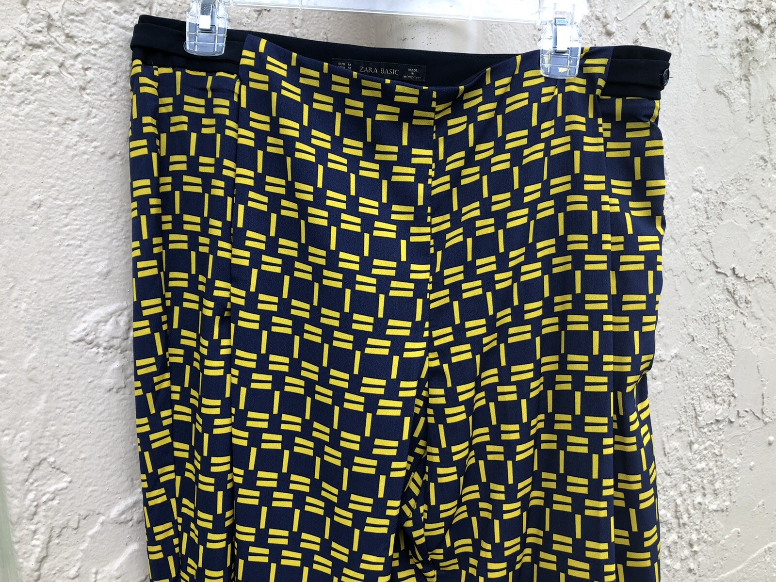 NEW ZARA Navy Blue with Yellow contrasting print crop trousers pants M 972