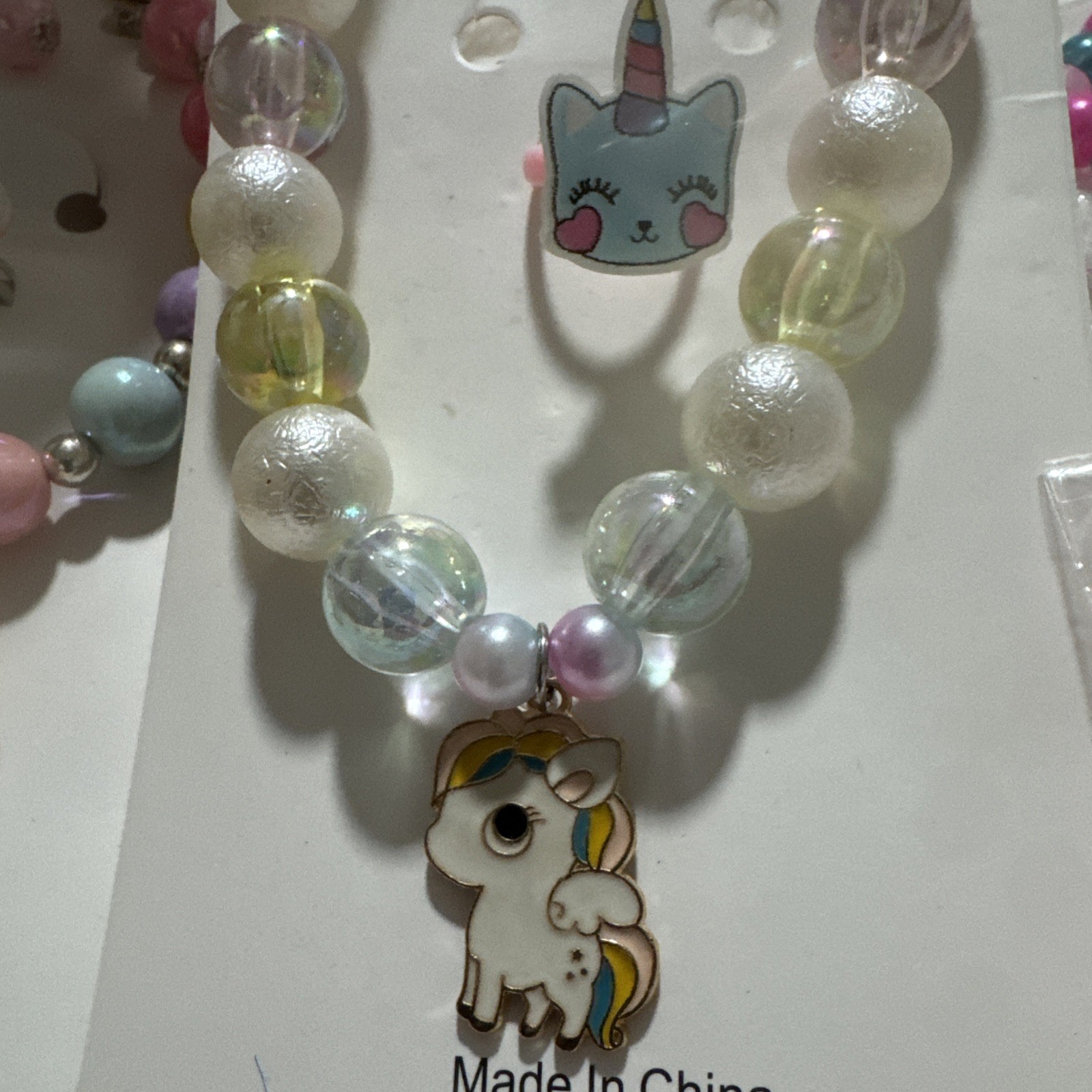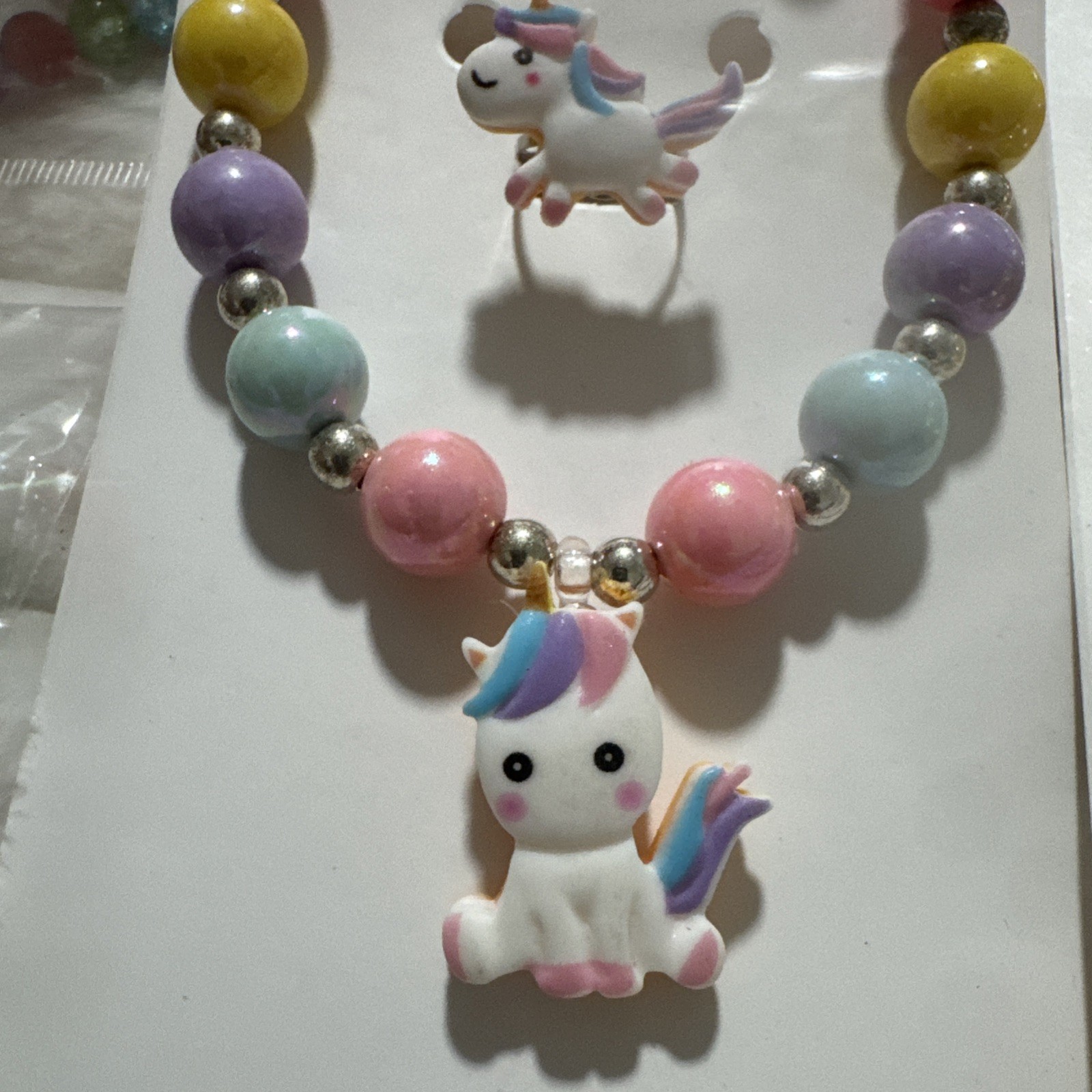 как выглядит 2 Set Unicorn Necklace Bracelet Jewelry Girls Little Kids Easter Birthday Gift фото