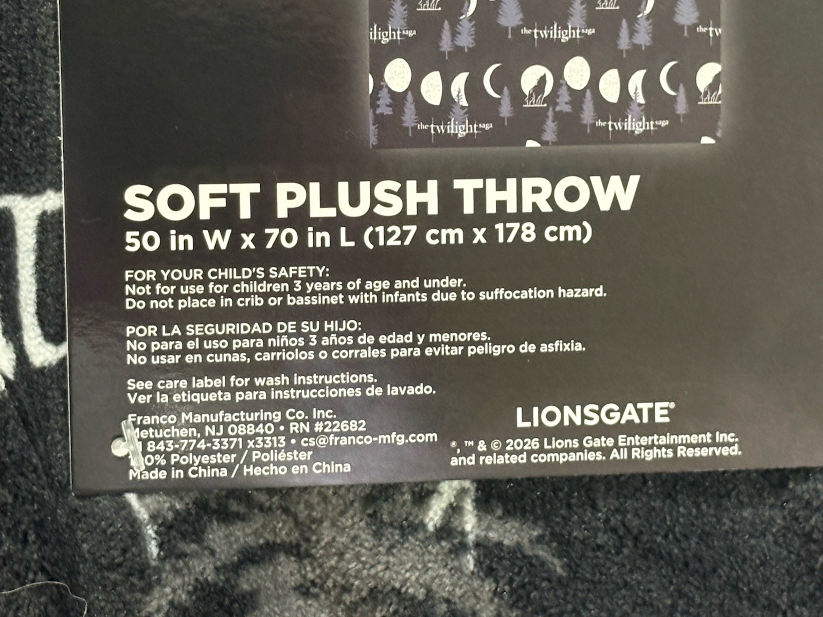 Twilight Saga Black throw blanket 50 x70 Team Jacob new with tags HTF