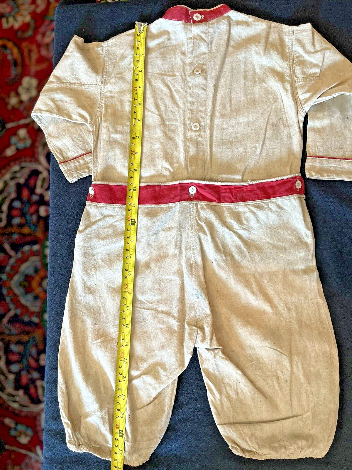 как выглядит EAR 1900S BOYS SIZE 4 BASEBALL UNIFORM, LABLE - KHAKI RED LONG SLEEVES/PANTS фото