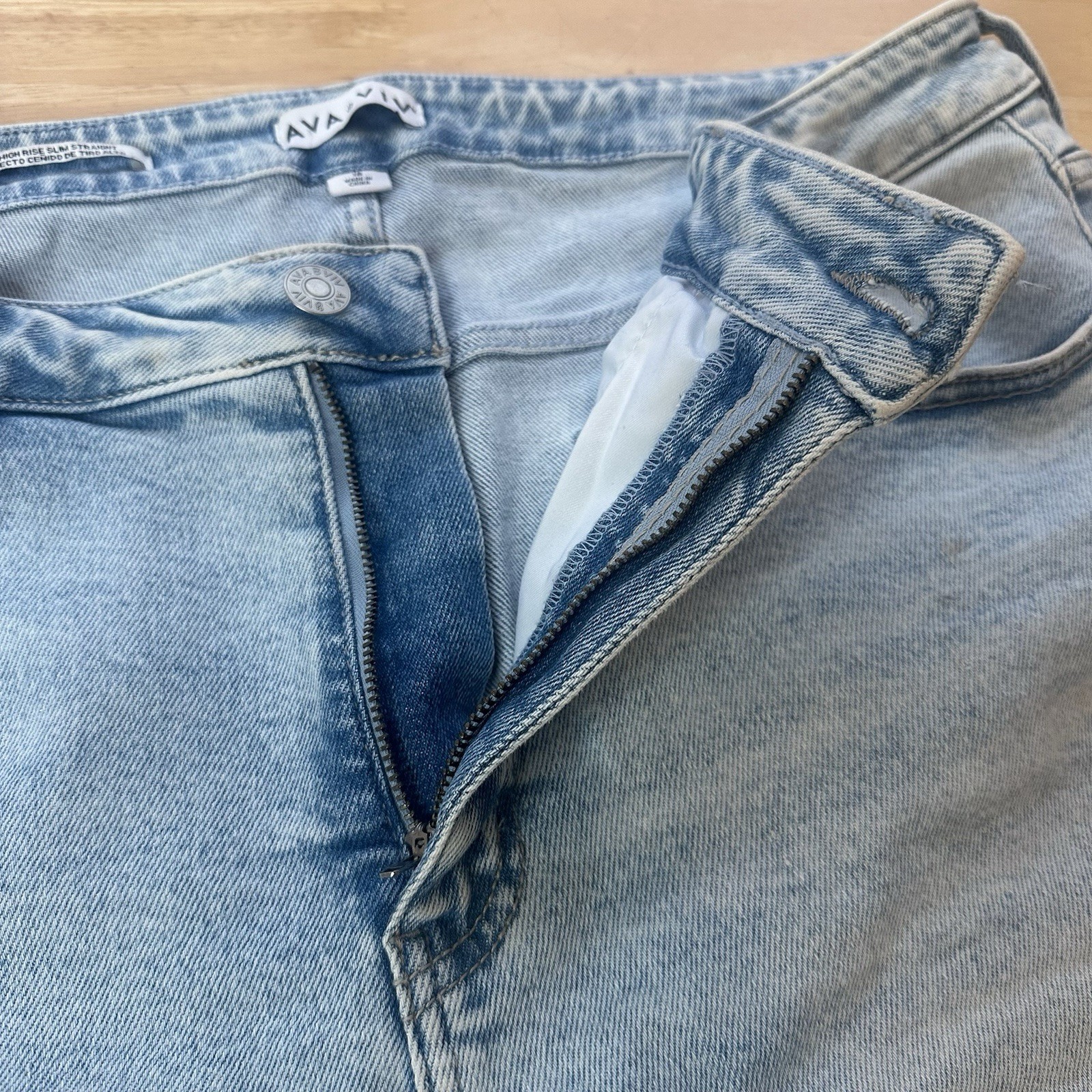 как выглядит Ava Viv Light Wash Denim Jean High Rise Slim Straight Size 18 Plus Size фото