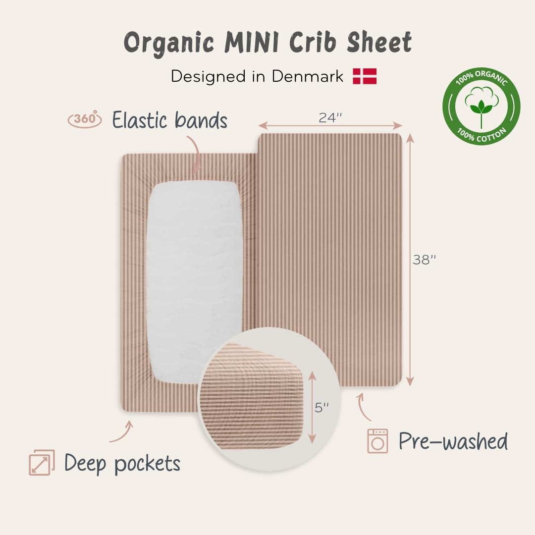 24 x 38 Mini Crib Sheets - Organic Cotton Muslin Fitted Crib Sheet Fitted for...