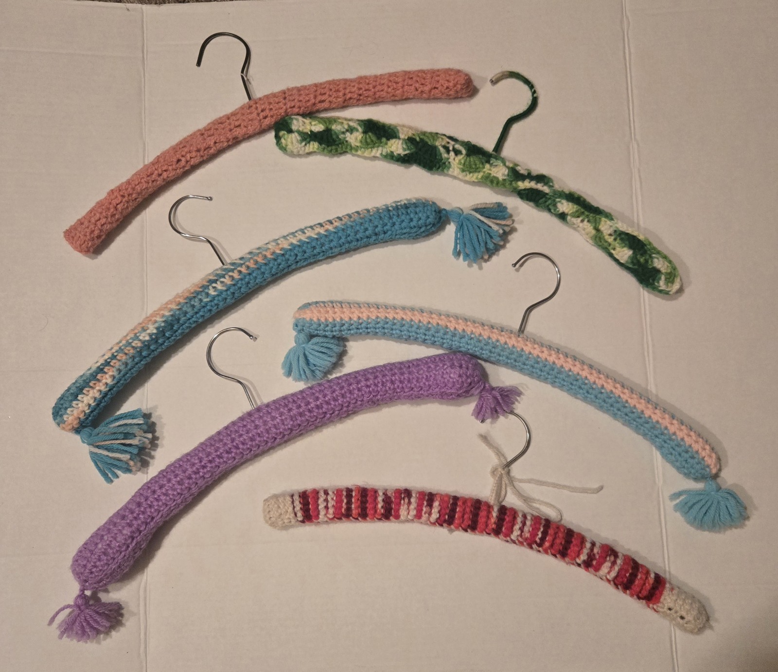 как выглядит Vintage Crochet Wooden Hangers Granny Square Knit Set Of 6 фото