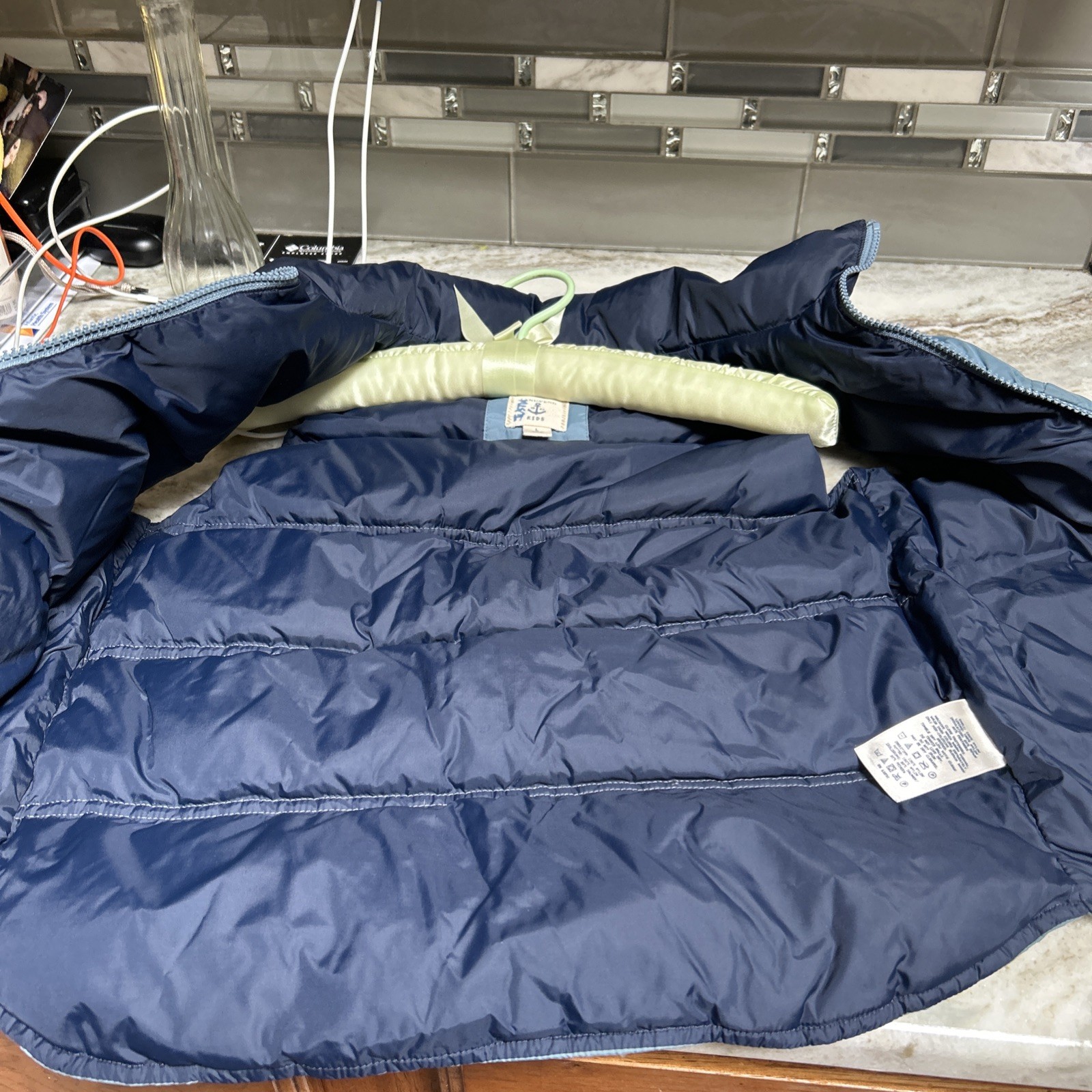 Lands End Kids Down Puffer Vest Zipper Front Pockets Blue Winter L WARM