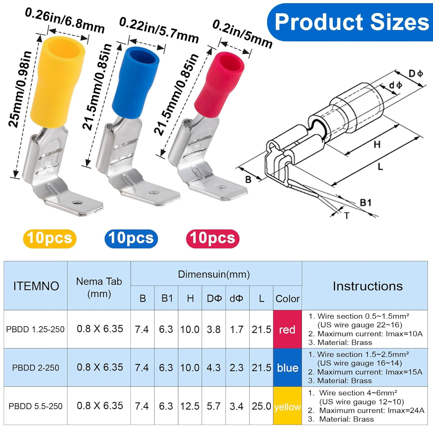 30Pcs Piggyback Spade Connectors,22-10 AWG 1/4 Quick Disconnect Piggyback Spade