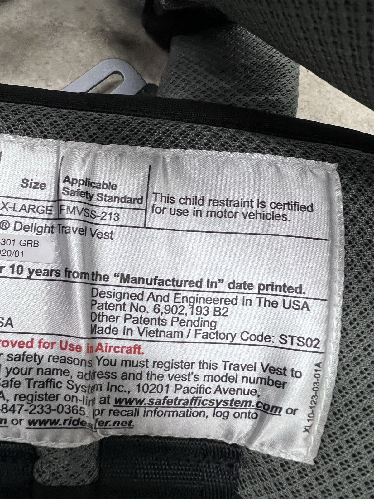 Ride Safer Delight Travel Vest X-Large For 80-110 Pounds JD14301XXX