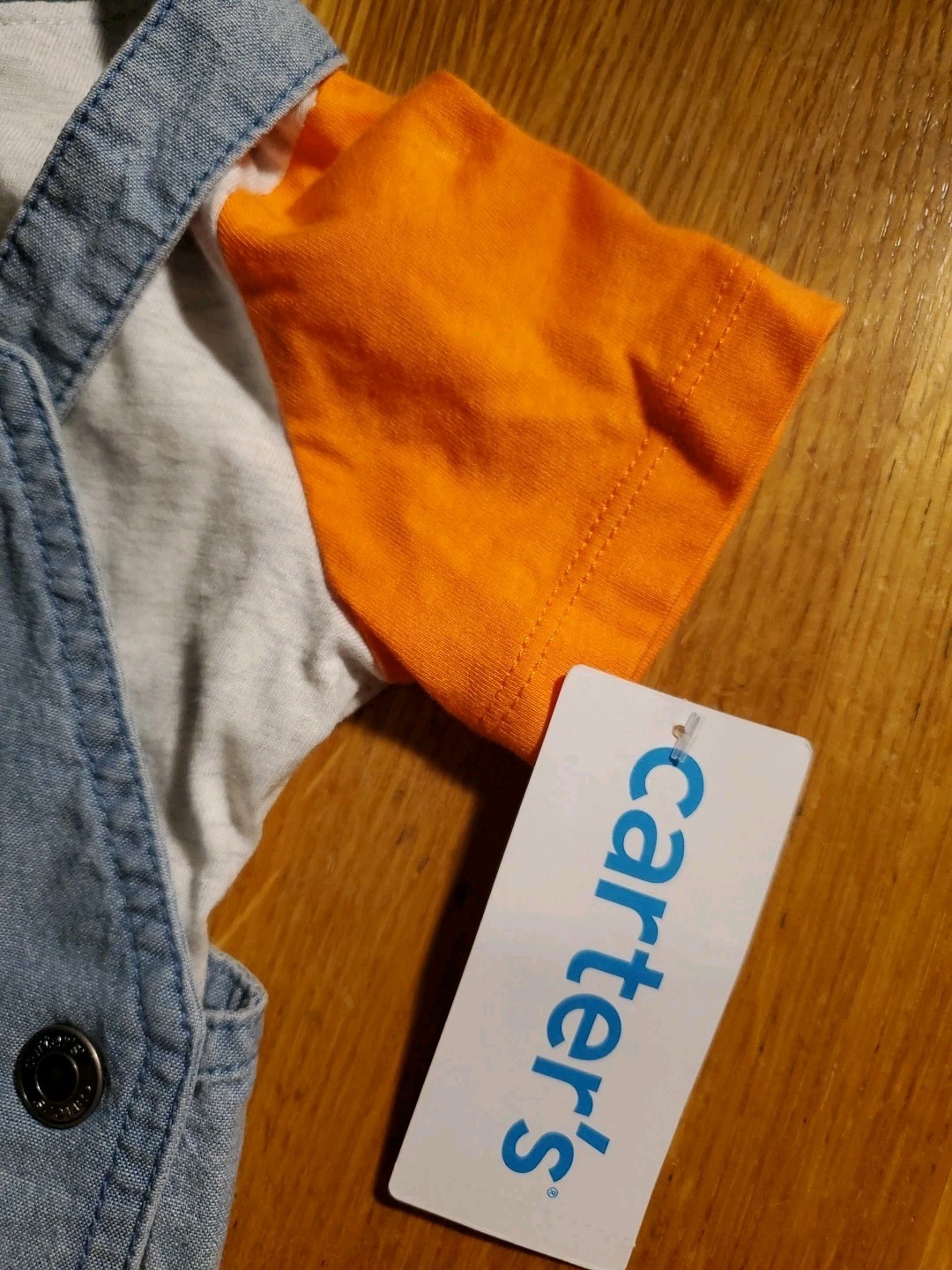 как выглядит Carters Infant Boys 12 Mos. Overalls Shorts Shirt Outfit Set Cotton фото