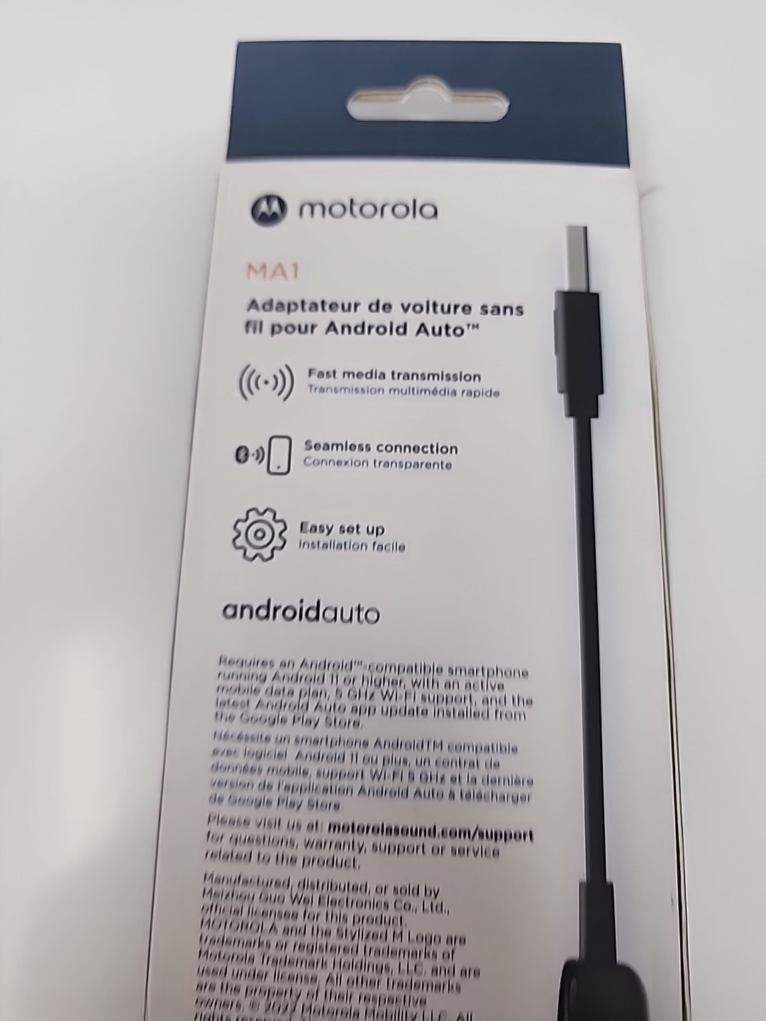 Motorola - MA1 Wireless Car Adapter for Android Auto - Brand New/ Sealed
