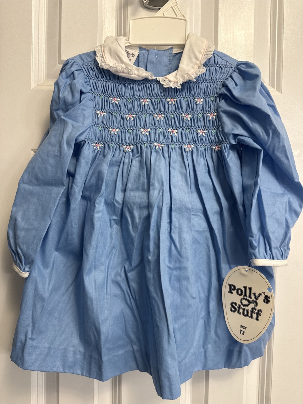 Polly Flinders Brand Blue Long-sleeve Smocked Dress Size 3T Great For Spring