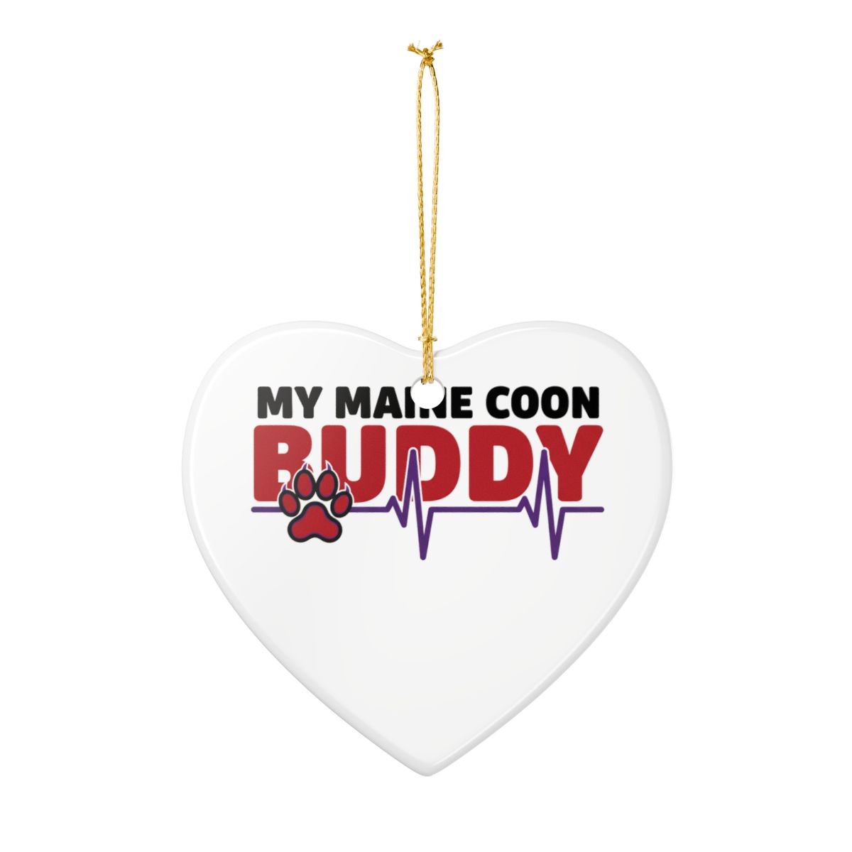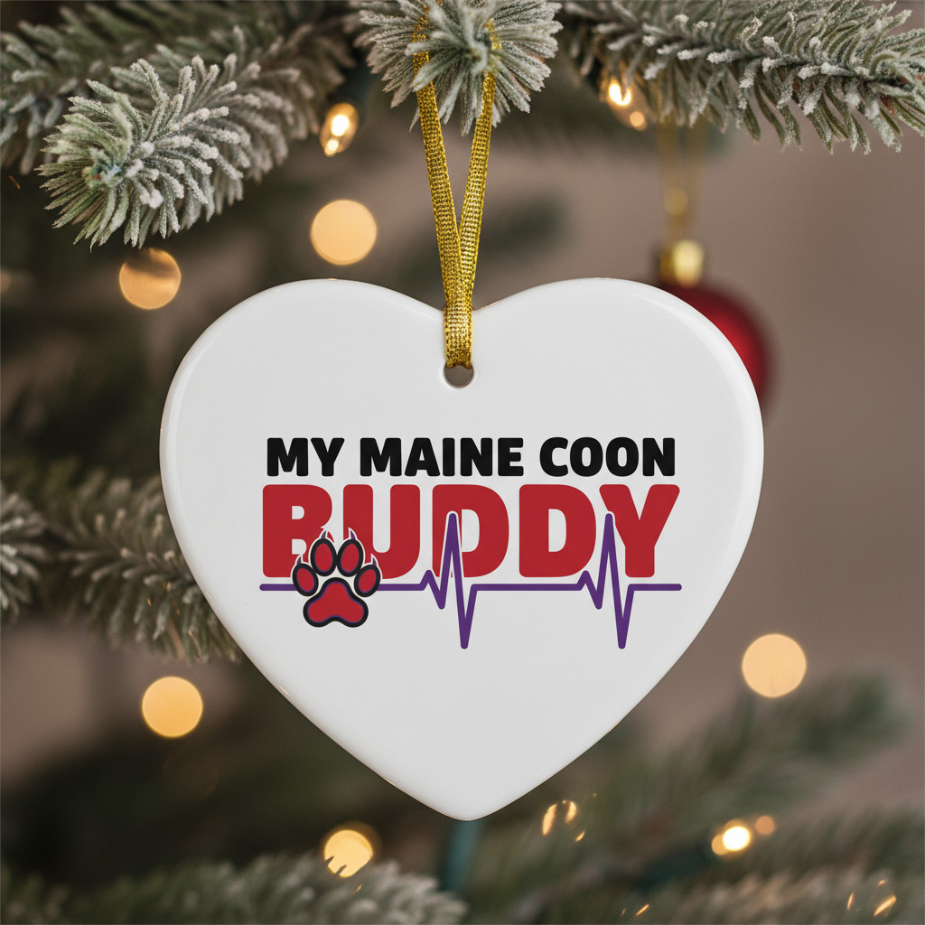 Custom Maine Coon Cat Paw Print Heartbeat Ornament Personalized Pet Lover Gift