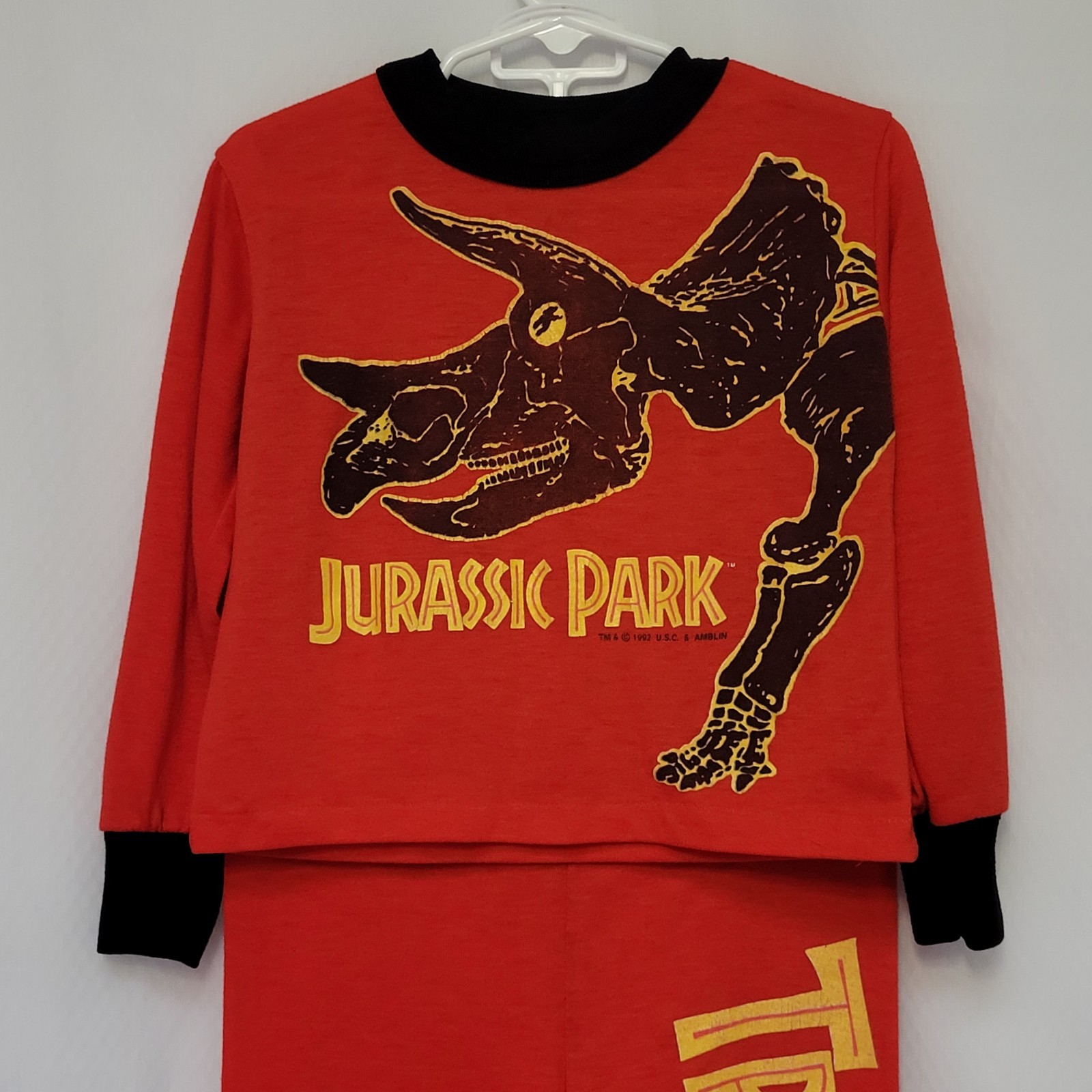 VTG 1992 Jurassic Park Boy's Red 2 Piece Pajamas Sleepwear Wormser Sz 4 USA Made