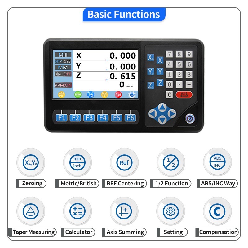 • 3 Axis RPM IP67Magnetic Scale DRO Set Digital Readout System Milling Machine 5um