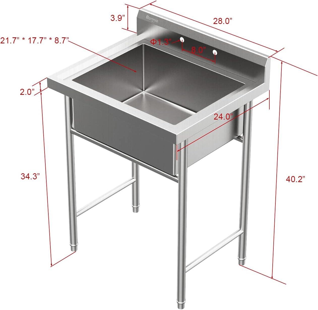 28 W x 24 D x 40.2 H Utility Commercial Sinks 304 Stainless Steel Restaurant