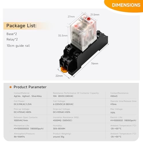 2PCS Electromagnetic Power Relay, 8-Pin AC 12V 10Amp DPDT Relay,LED 12VAC-2pcs