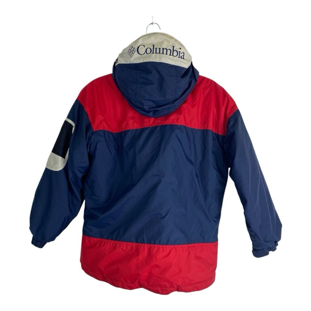 как выглядит Columbia Youth Jacket Adult Size 14/16 Red Blue Puffer Zips Hood Pockets Ski фото