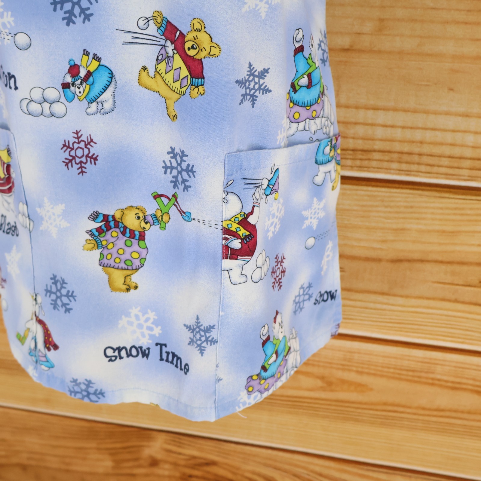 как выглядит SB Scrubs Scrub Top Womens Size S Blue Winter Pattern Polyester Blend Pockets фото