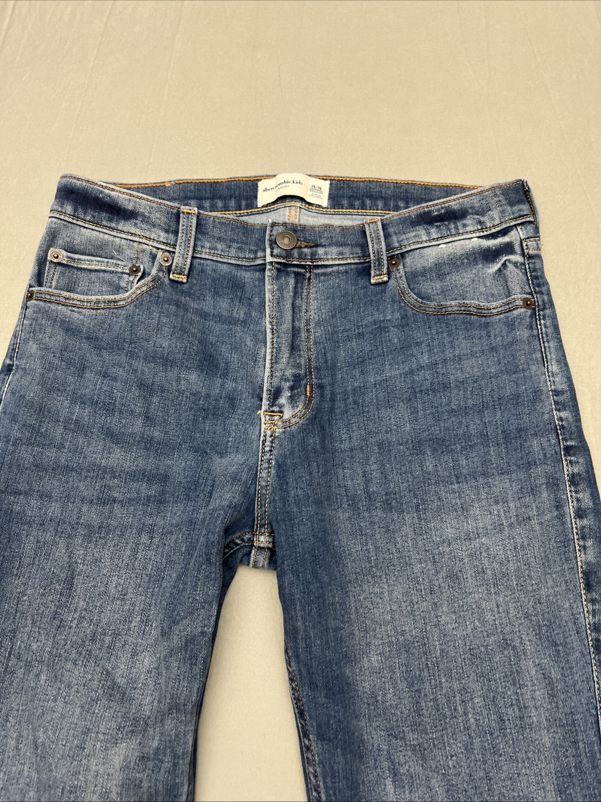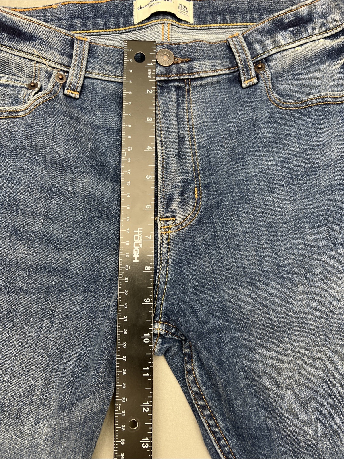 Abercrombie Kids Girls 15/16 Straight High Rise Jeans Med Wash Distressed