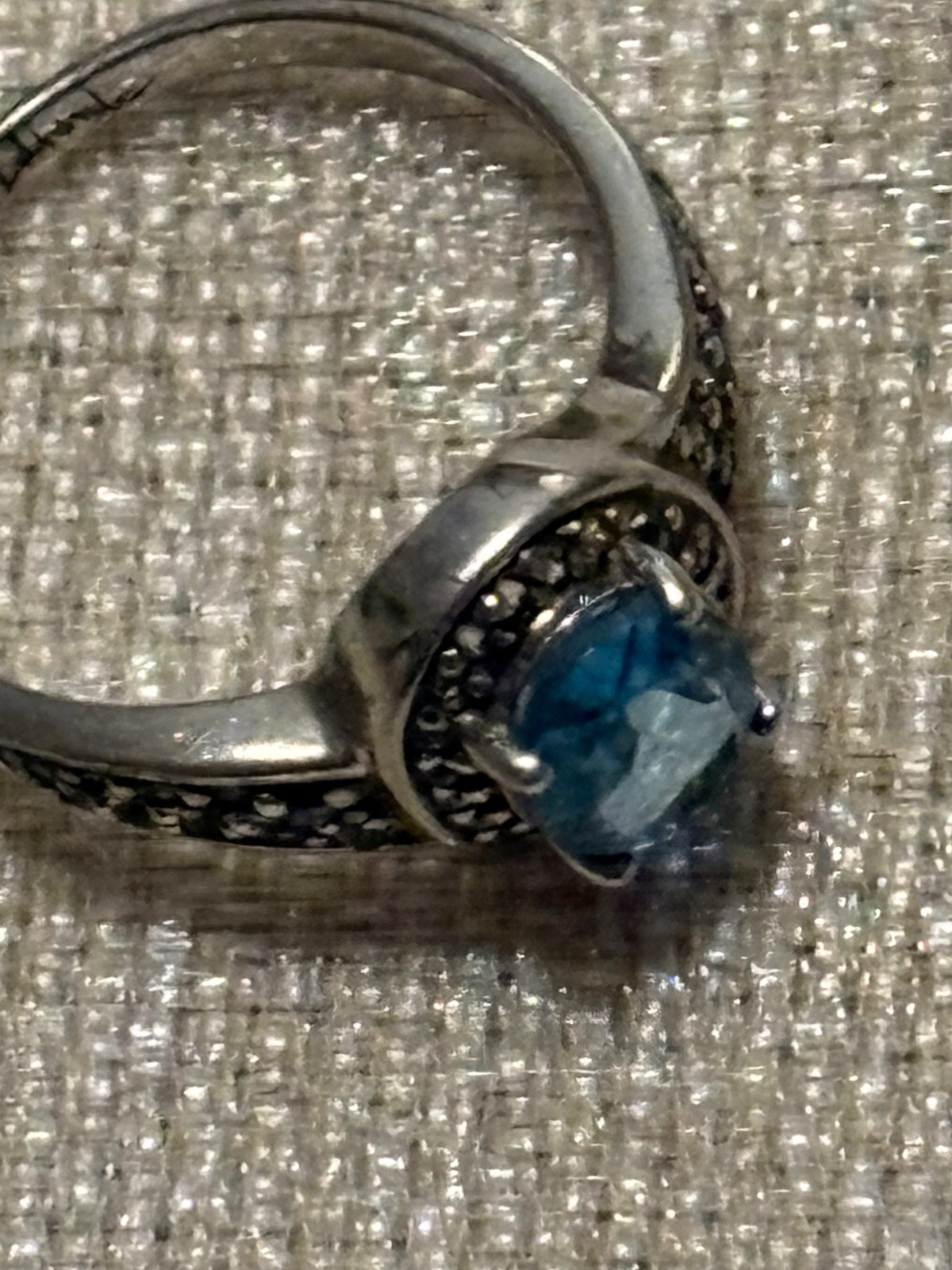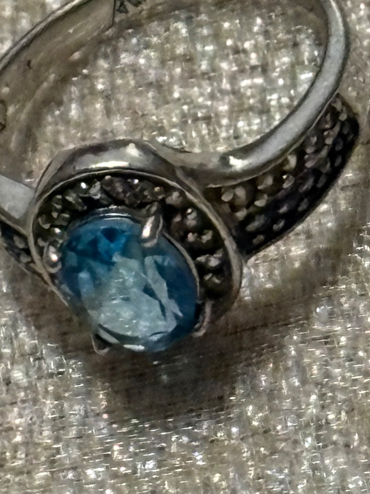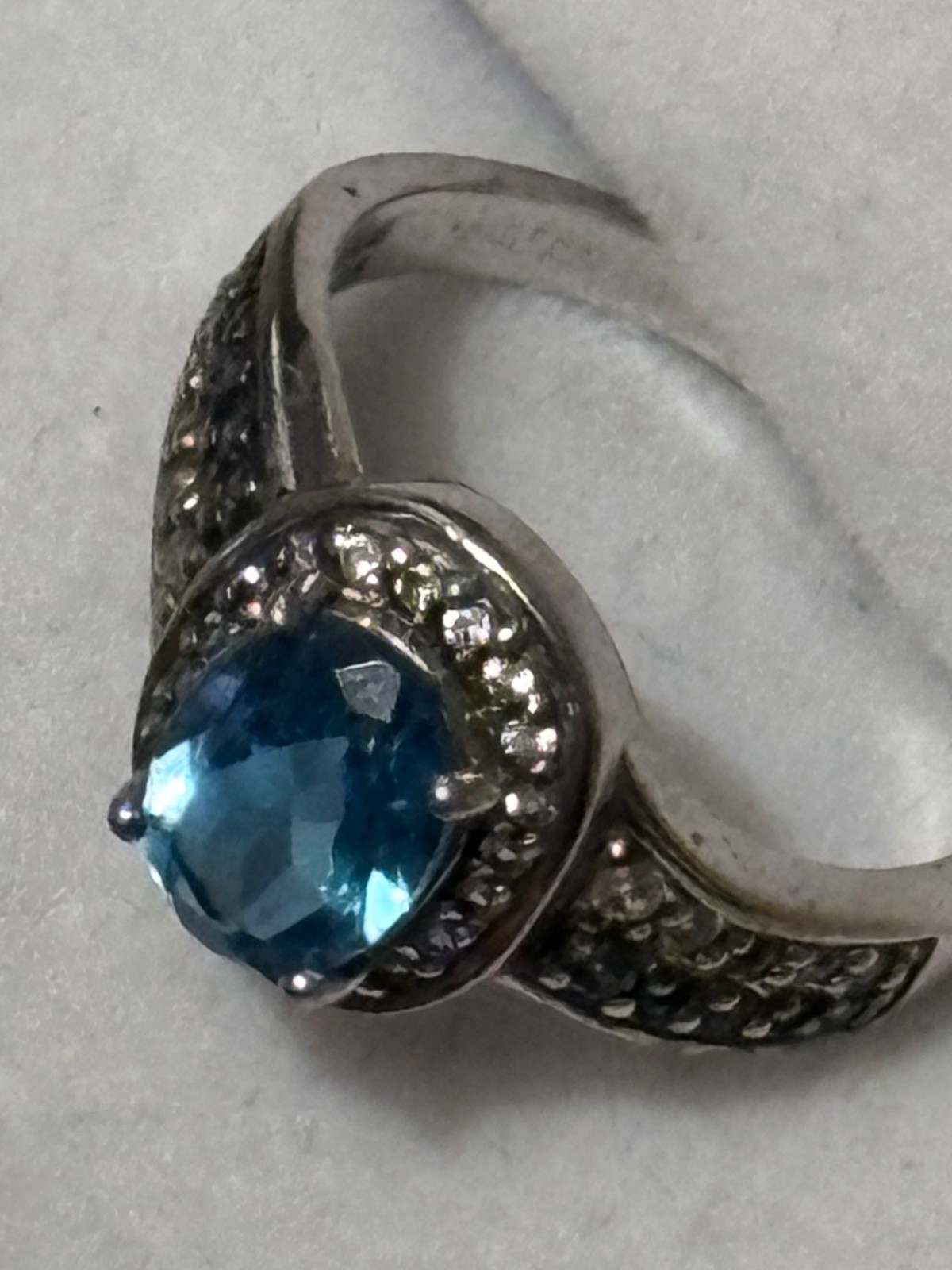 Size 6. Genuine 2 Carat Aquamarine Ring With Rhinestones. Sterling Silver.
