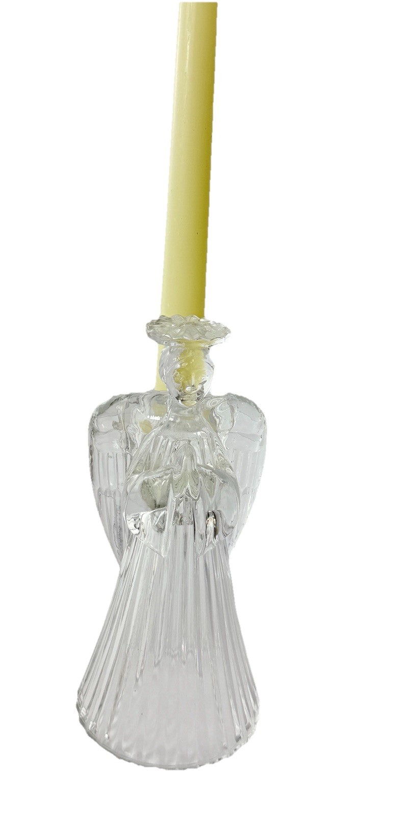 • VTG Stained Glass Angel Figurine Holding Playing Trumpet Christmas Decor