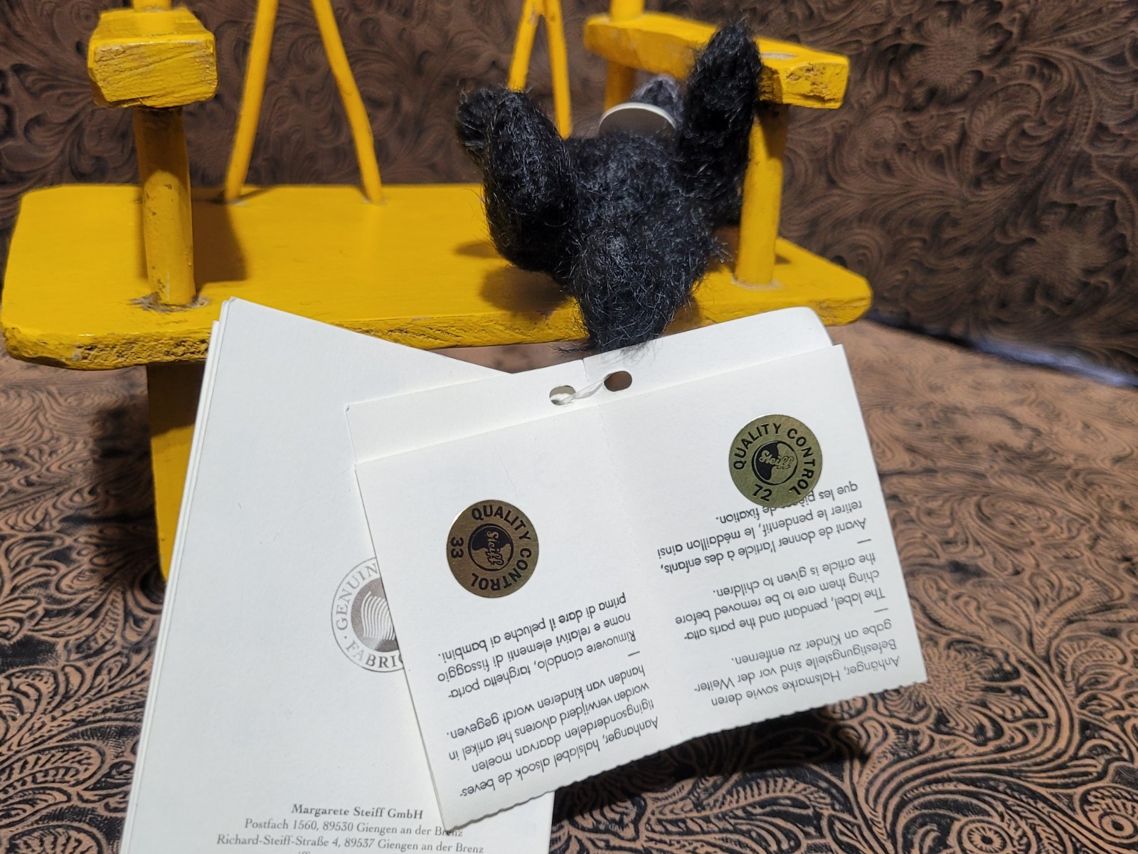 как выглядит "Schwarz" 3-3/4inch, Retired Steiff Bear 02962 Jointed, Black Mohair, Darling фото