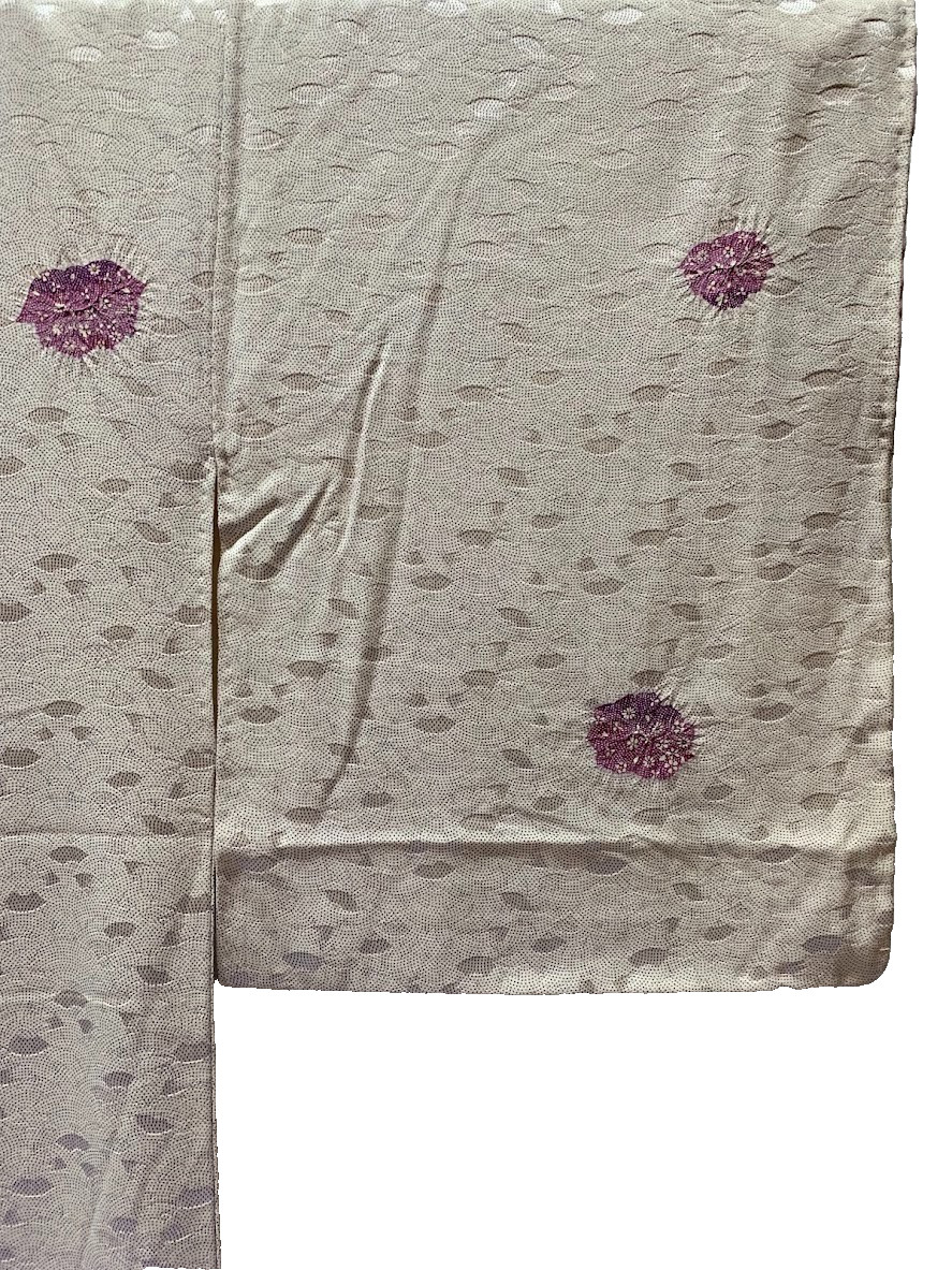 Vintage Japanese Kimono Komon Purple Seigaiha M 61in For Remake AS-IS Japan