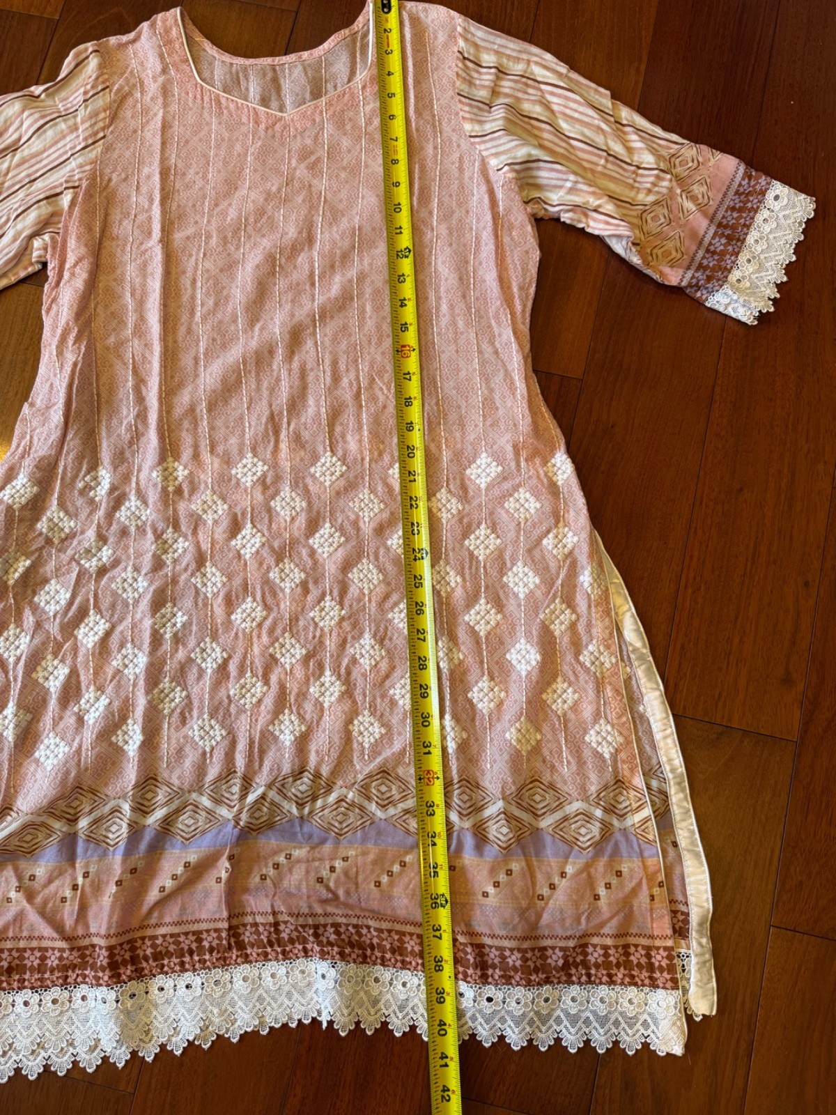 Kurta Top Unbranded Embroidered Tunic Pink White No Size