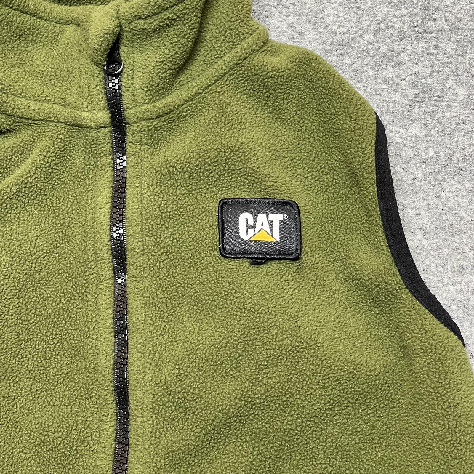как выглядит CAT Vest Youth Medium 10/12 Green Fleece Full Zip Pockets Outdoor Warm фото