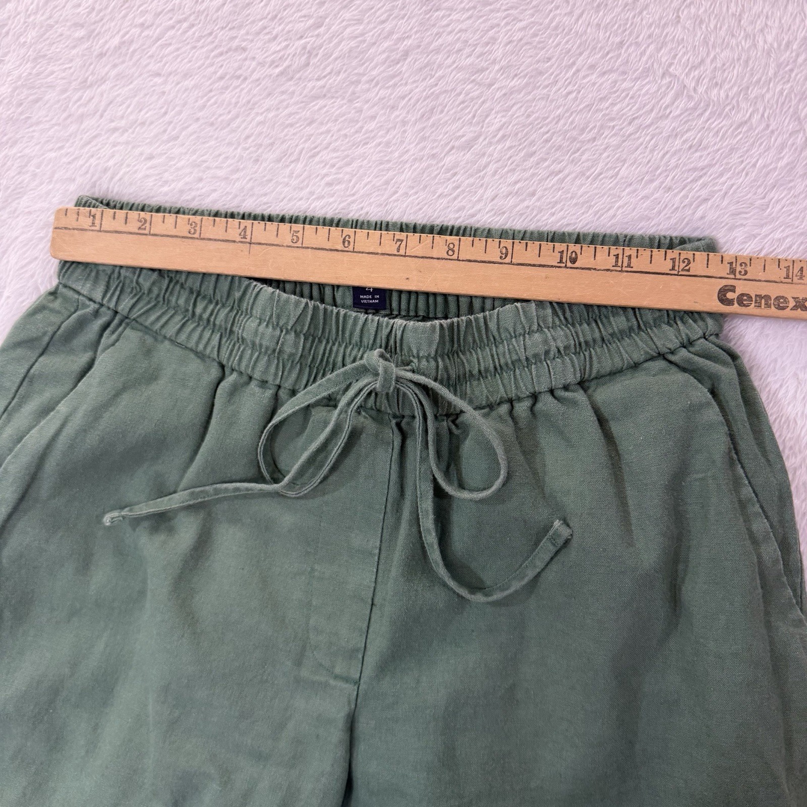 J Crew Factory Linen Blend Pull-On Pants Green Size 4 Cuffed Ankle AW839