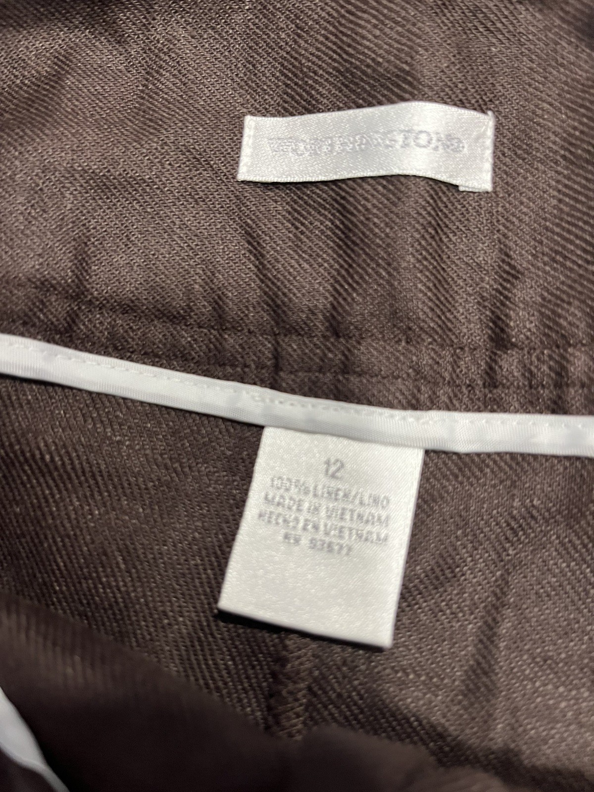 NWT Worthington Dark Brown Wide Leg Linen Pants 12