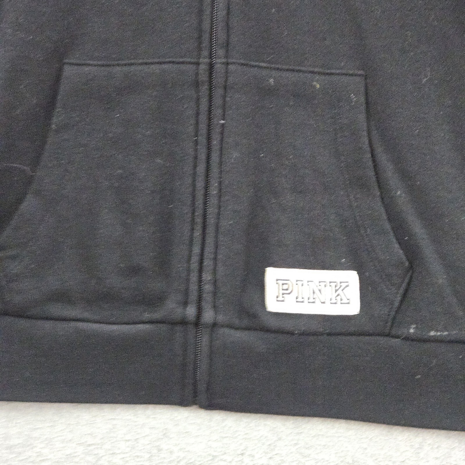 как выглядит PINK Victorias Secret Women Hoodie M Black Logo Text Activewear Zipper Long фото