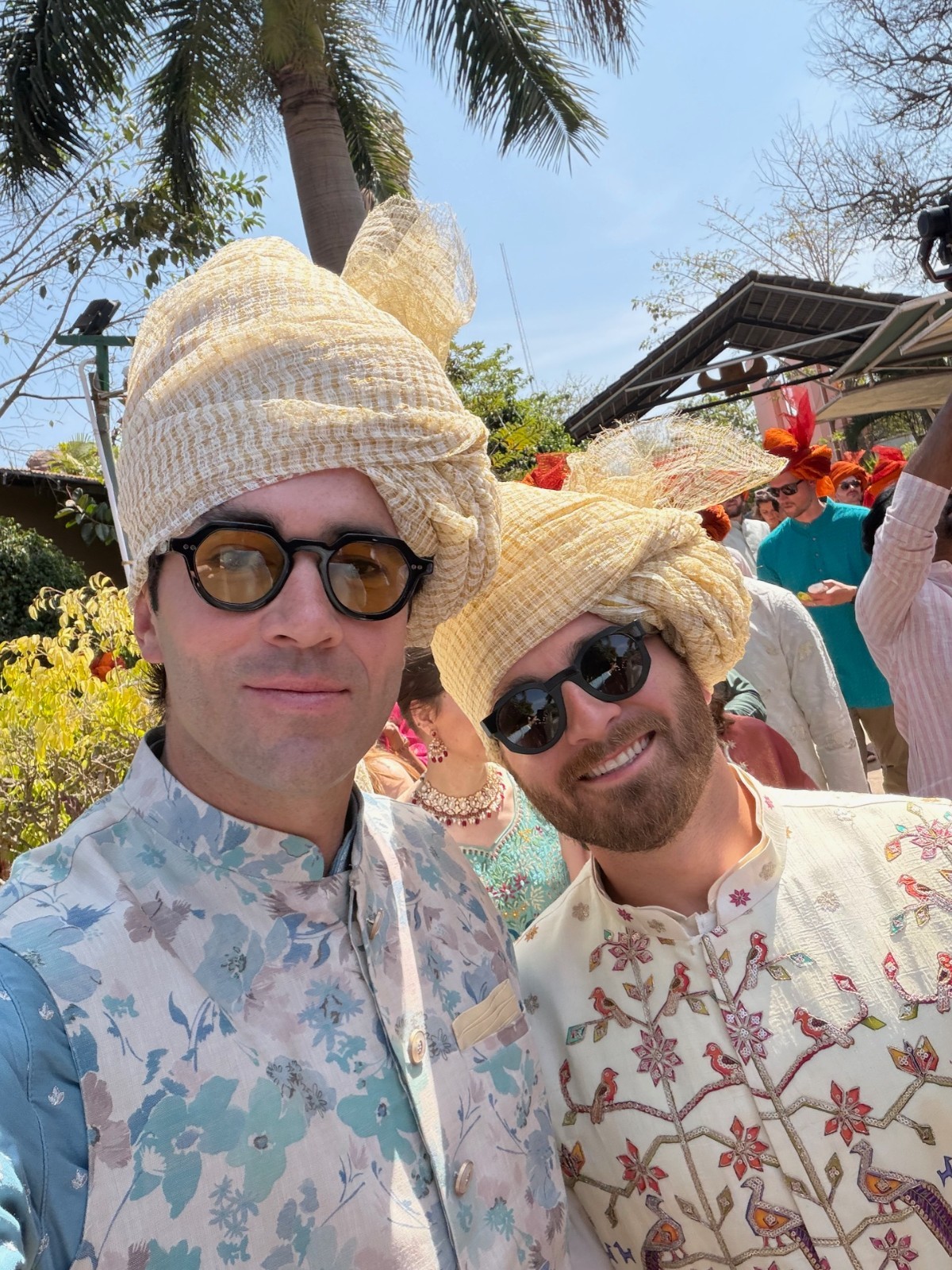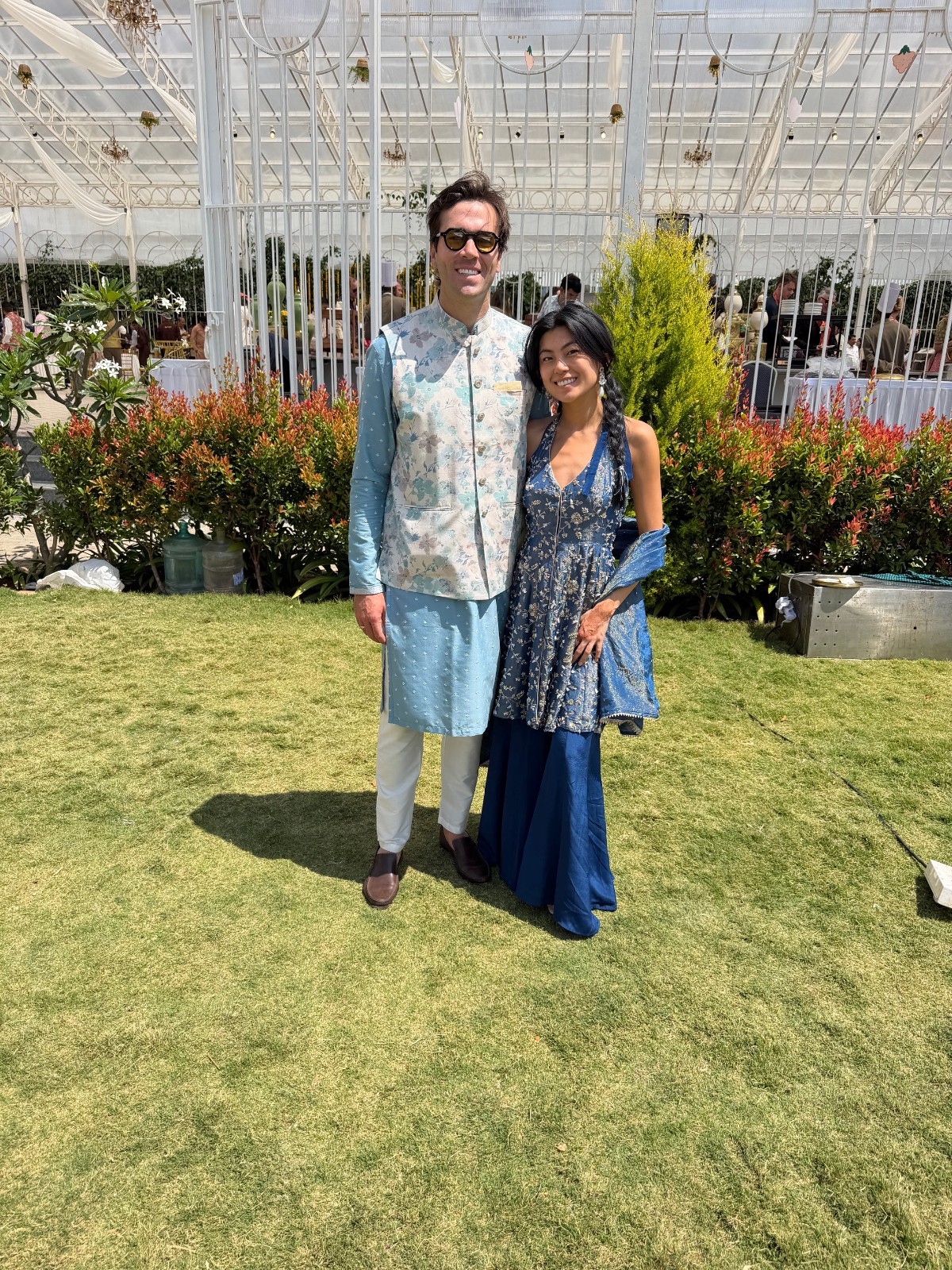 Manyavar Kurta Pajama Vest Set - Indian Wedding - Light Blue Floral - Mens XL