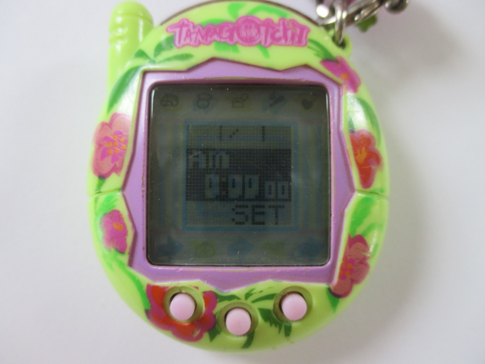 как выглядит Tamagotchi Connection V3 2004 Green Pink Tropical Flowers Lanyard, Charm, Works фото