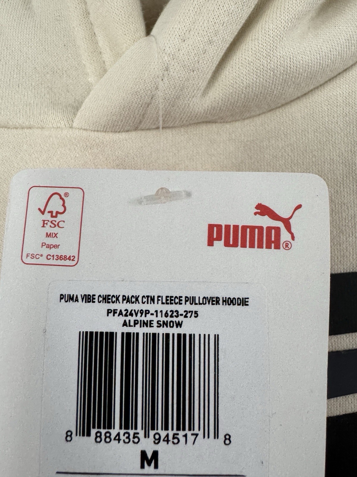 Puma Boys Youth Vibe Check Pack Fleece Pullover Logo Hoodie Alpine Snow Sz M NWT