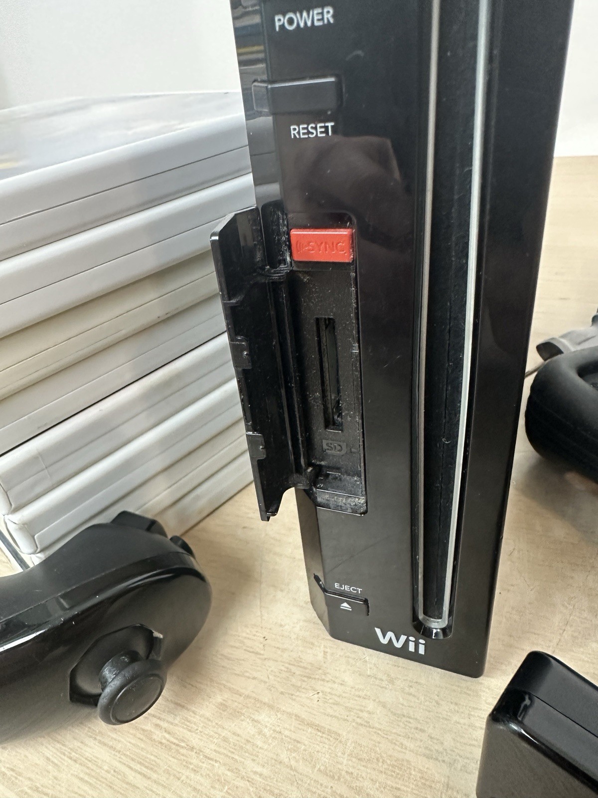 Nintendo Wii Console Black RVL-001 Bundle w/ Games, OEM Remote Cords - WORKS