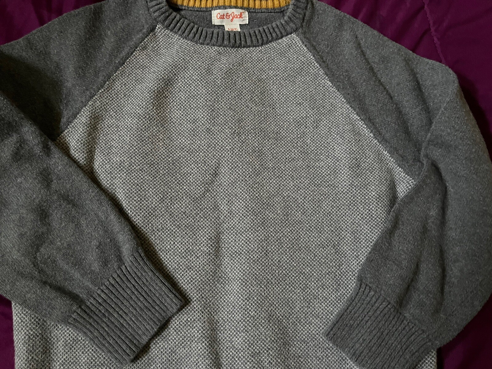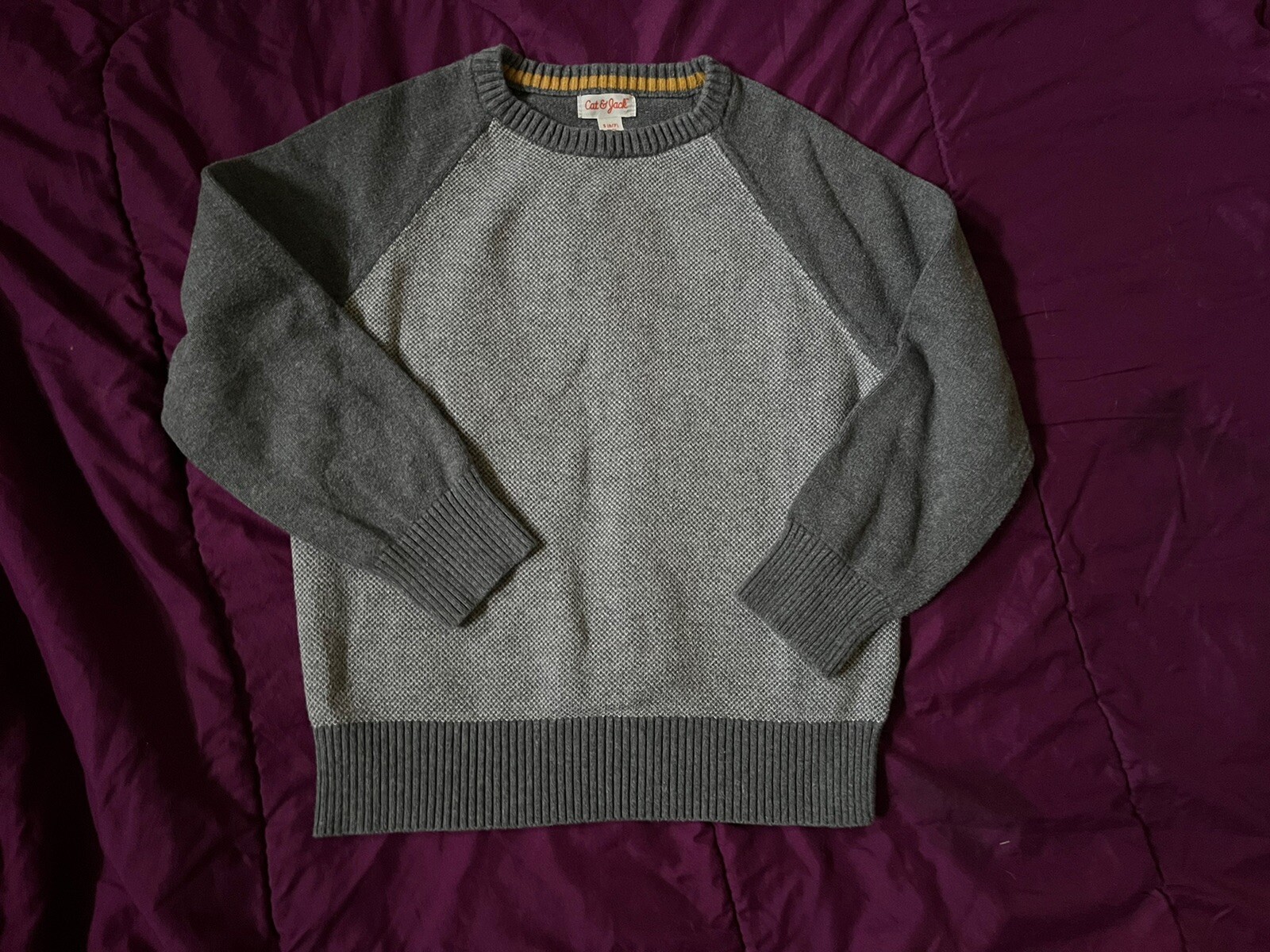 как выглядит Cat Jack Boys Sweater Size 6/7 Grey Crew Neck Winter Wear Pullover фото