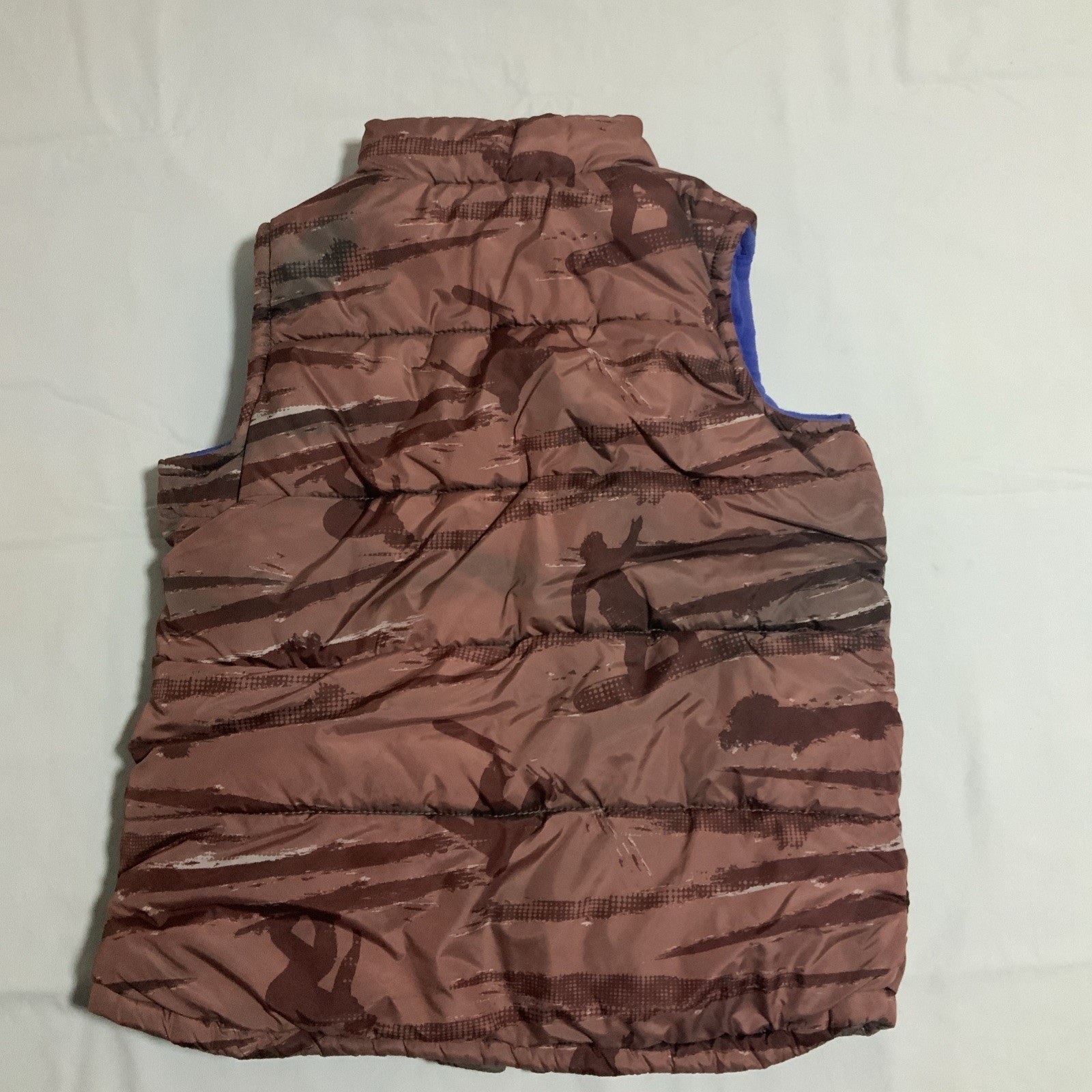 Old Navy Boys Puffer Vest Maroon Abstract Blue Fleece Lined Size Large 10-12