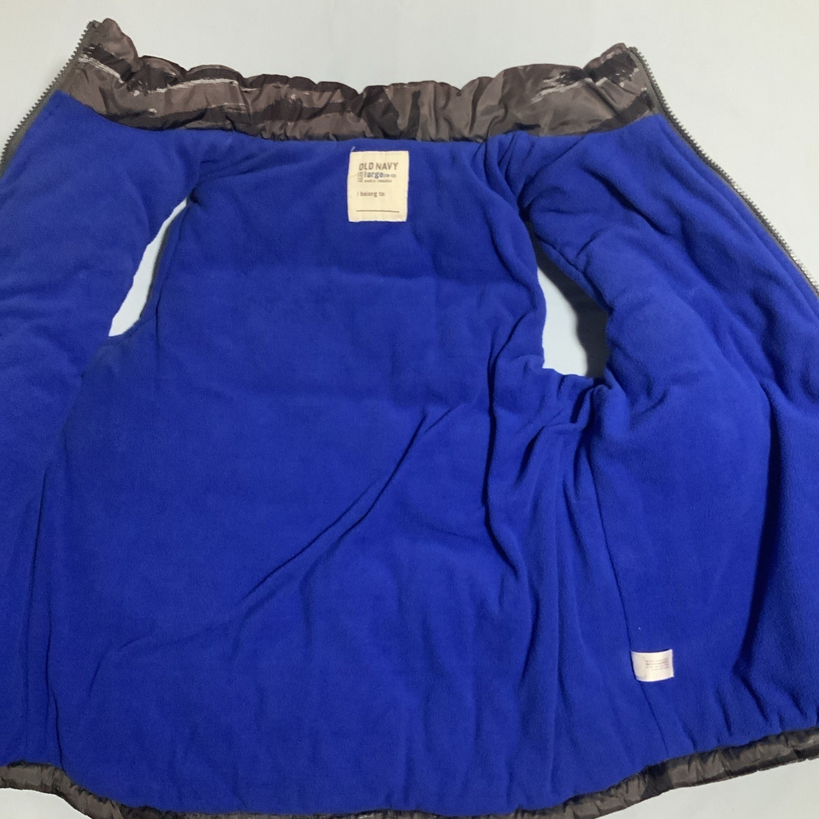 как выглядит Old Navy Boys Puffer Vest Maroon Abstract Blue Fleece Lined Size Large 10-12 фото
