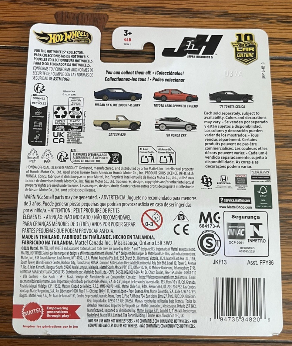 как выглядит 2026 HOT WHEELS PREMIUM JAPAN HISTORICS - 88 HONDA CRX фото