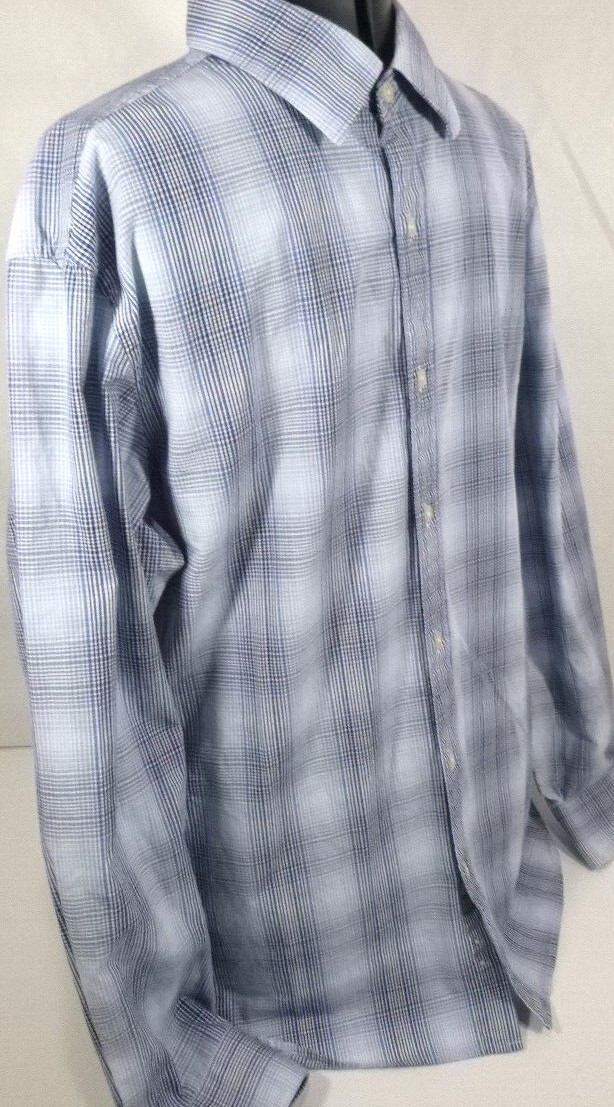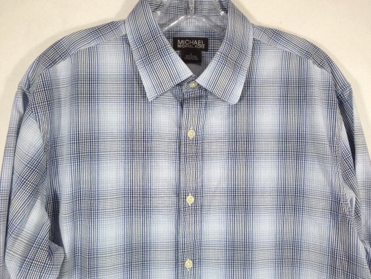 Michael KORS-Mens Long Sleeve Button Down Shirt-Large-Blue Plaid-Classic Casual