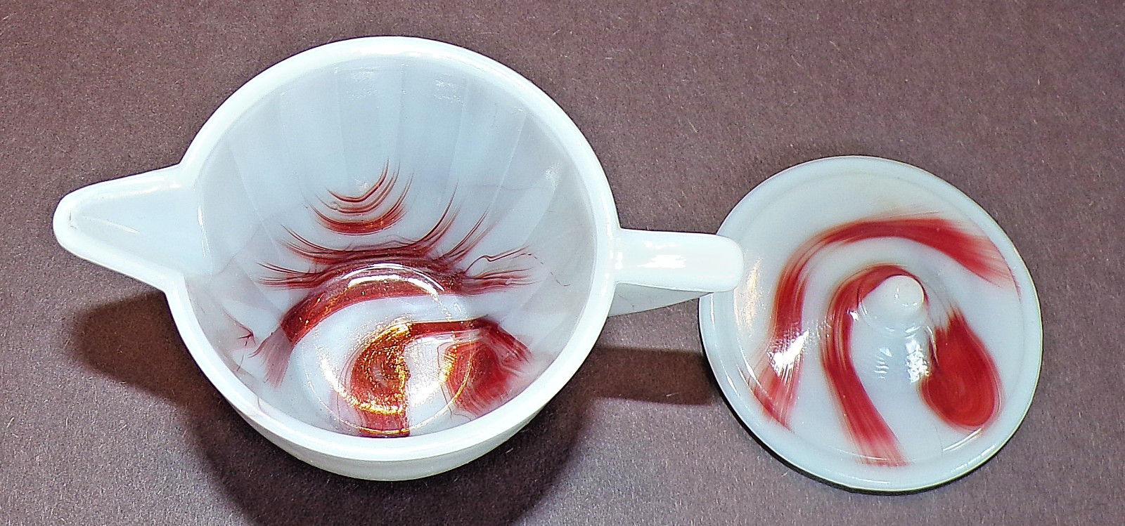 Akro Agate Small Oxblood White Interior Panel Teapot With Lid