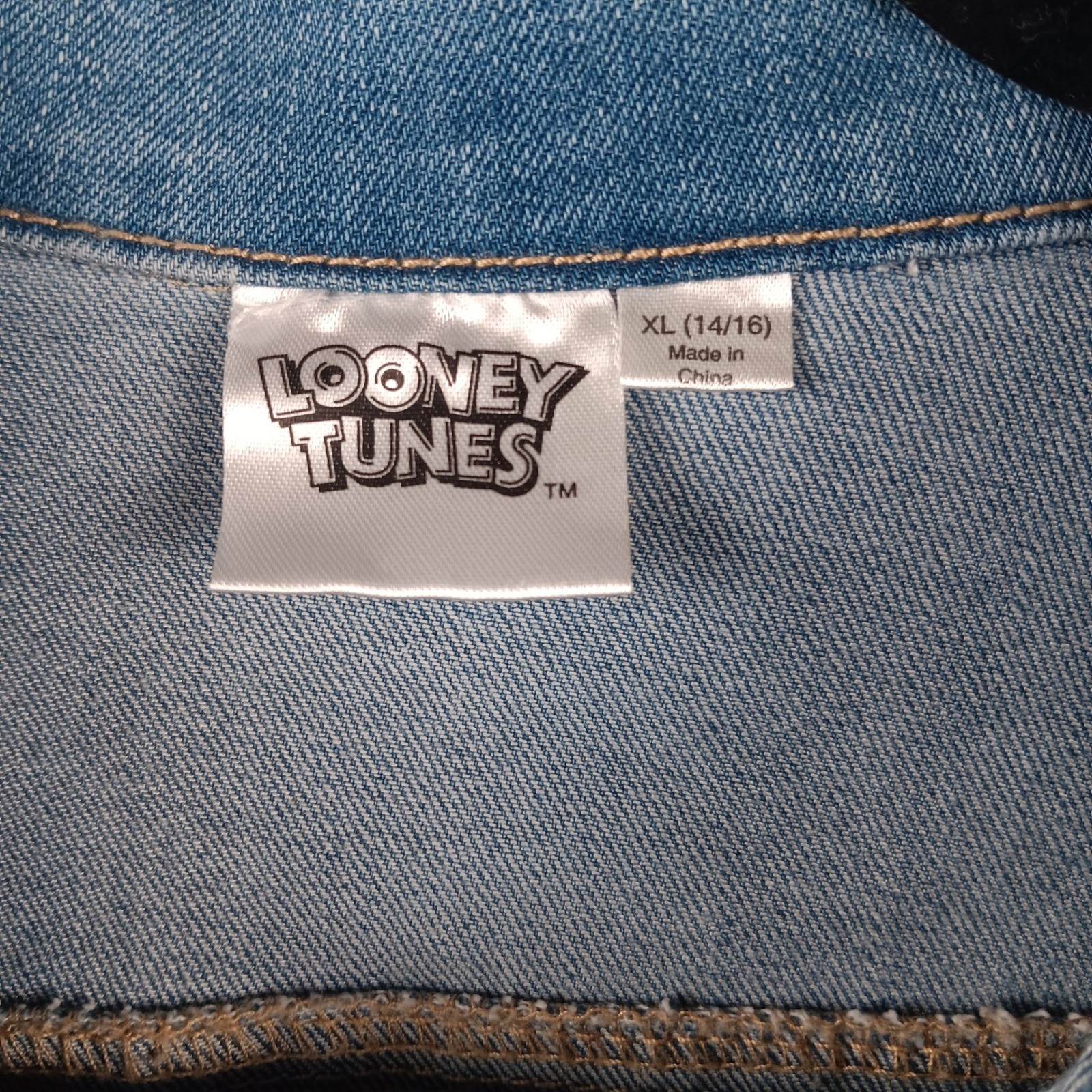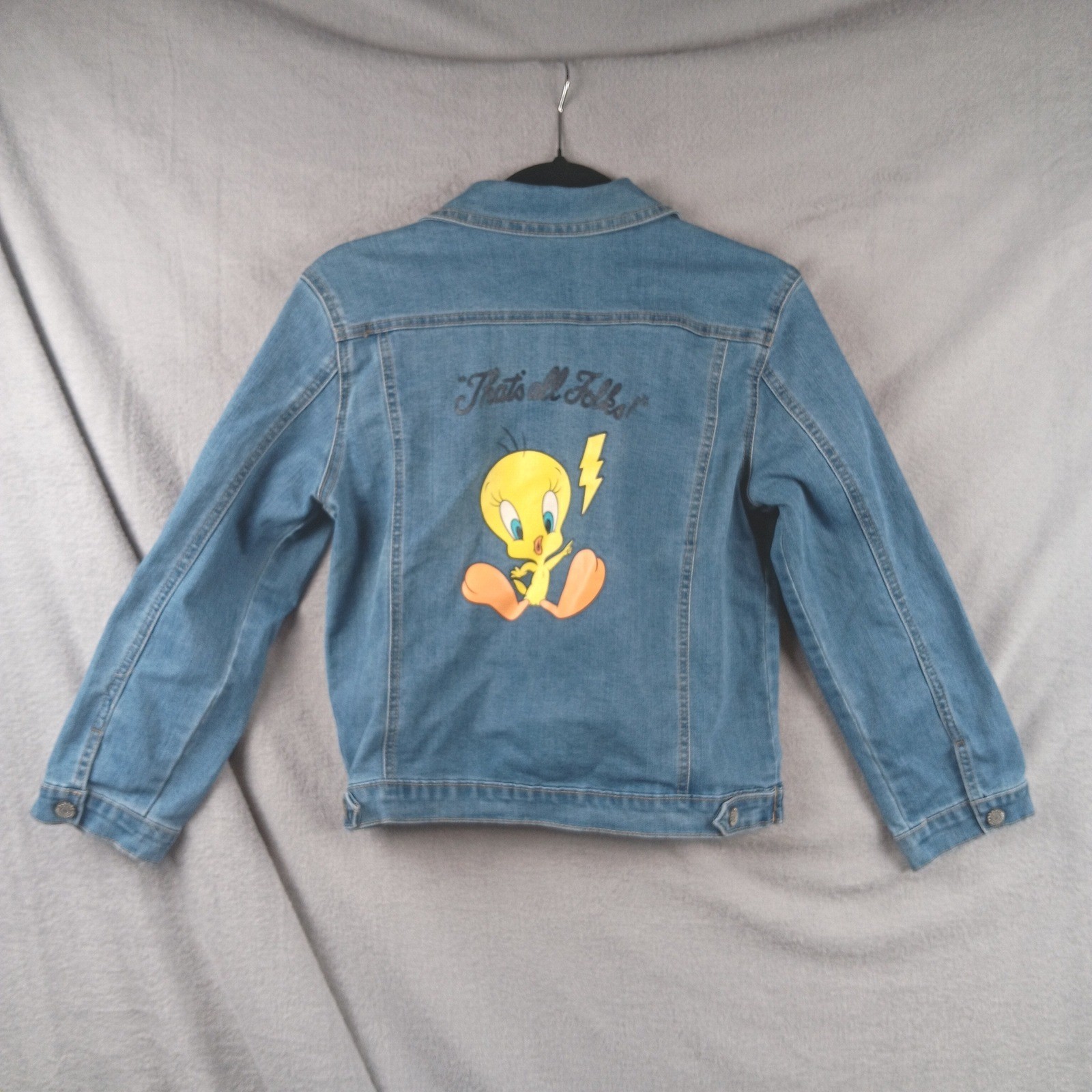 Looney Tunes Tweety Bird Denim Jacket XL 14/16 Kids Blue Graphic Jean Coat